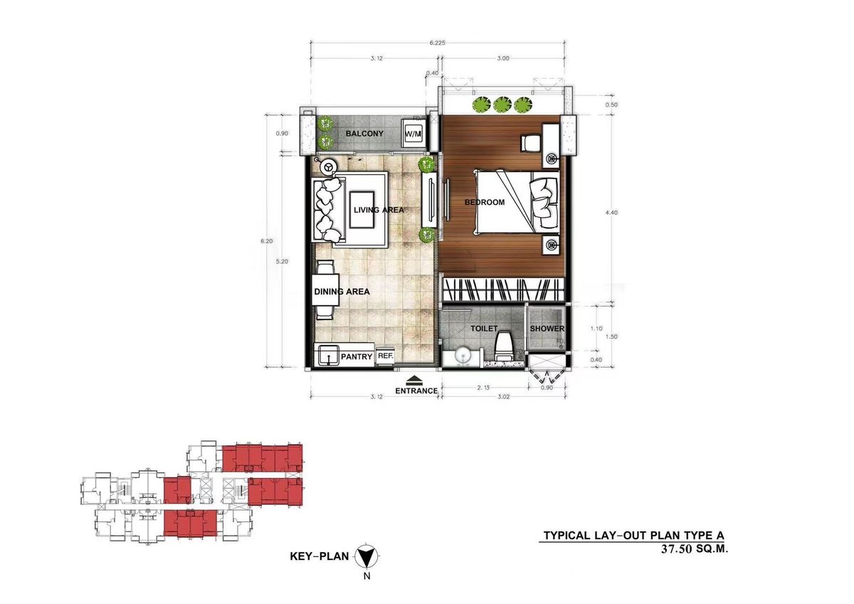 1 bedroom TC Condo for sale - Size 37.5 sqm. Good building - High view, 24-class room, corner room - Complete furniture such as 2 air conditioners, hot water, microwaves, beds, built-in cabinets, refr