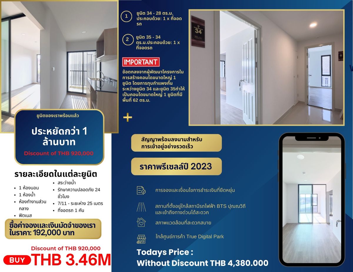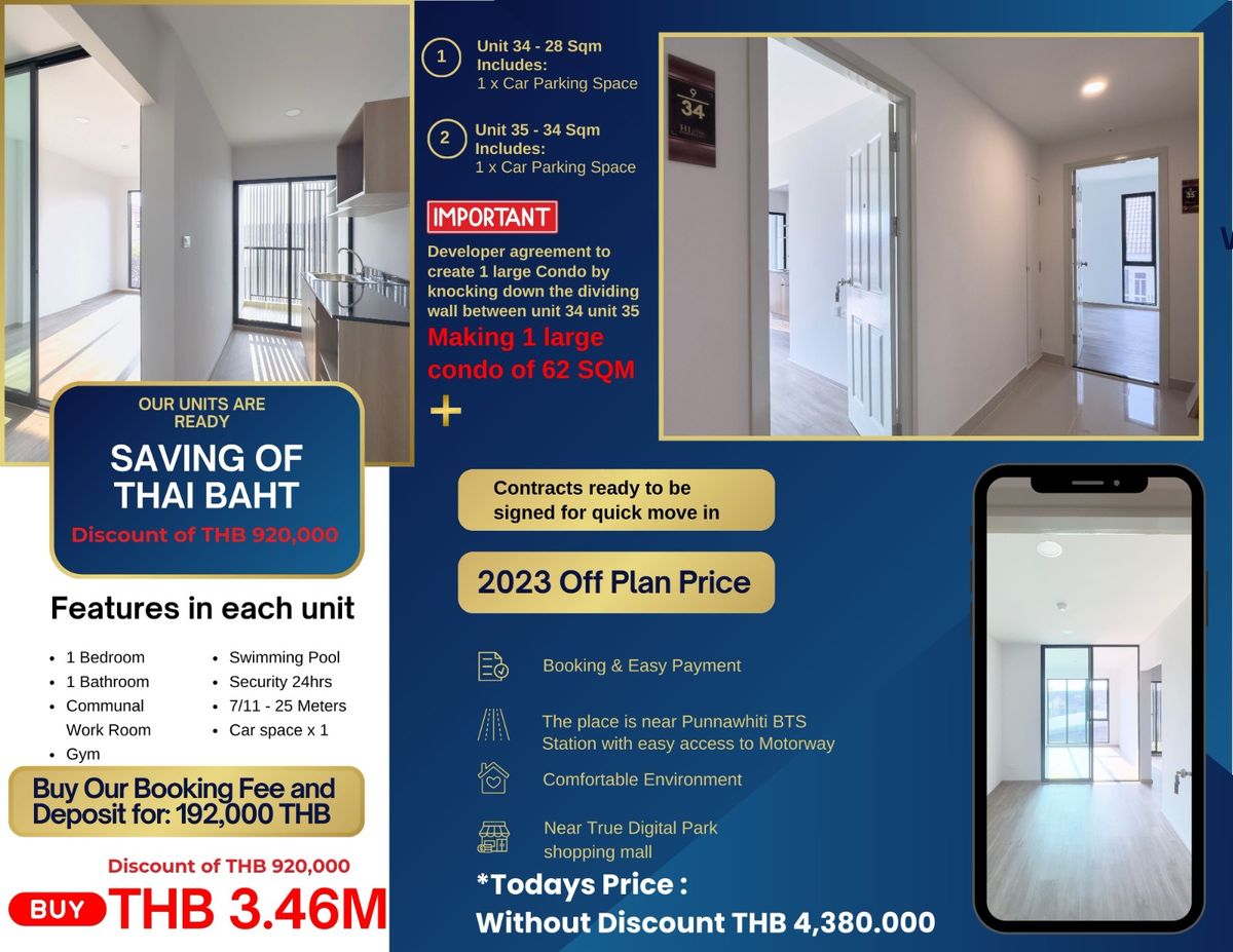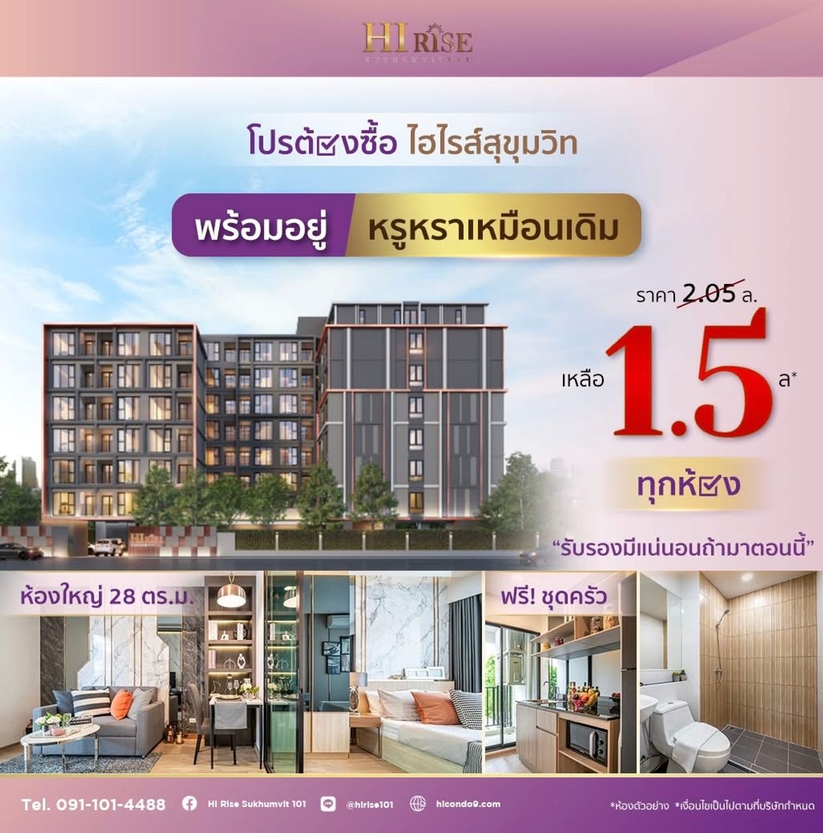 * Sell down payment for sale of condo reservation* (owner selling itself) Sell "192,000" baht, including the contract change fee (selling loss), get Agent The project name Hi Rise Sukumvit 101, the new condo Selling apartments, number 34 & 35, 3rd floor (2 rooms) Can penetrate the connecting walls into 2 CONACT rooms. Little Unit ⭐️ Size 28 square meters, room number 34 Type 1 bedroom, 1 living room, 1 bathroom, free kitchen set ⭐️ Size 34 square meters, corner room, at the end of the room number 35 This is 2 rooms next to each other, 1 bathroom, 1 bathroom, 1 free bathroom, built -in kitchen Located in Soi Sukhumvit 101, Punwithi 39 Near 1 KM Green Line from Punnawithi Station 🚝 Near the Sukhumvit 62 Expressway 62, quiet atmosphere, not crowded from the condo, walk to the front of the alley, about 100 meters to 7-Eleven Location near True Digital Park, Virgin Hit Close to Paradise Park & Central Bangna ⭐️ Pages of the 29d square meter ⭐️ The contract price of the contract is 34 square meters, 2,550,000 Total 2 rooms, the contract price of 4,380,000 ⭐️ Request to sell the Price Pre Sale 2 rooms, totaling 3,460,000 Receive a reservation to make a contract. Can be connected to the bank. This price is very good, very worthwhile, because reserved since the end of the year 2022 Buy 2 rooms, 2 parking spaces (with a single building) Facility Central There is a swimming pool. Fitness room Central Room Co-working Space The condo was completed in January 2025 The empty room is ready to move in. But still not decorated The project, plus the Top Hin Kitchen set for both rooms More details, say hi DM or call If you only want one room Can say hello Lets talk about the conditions Nutty Contact number Line ID Nuttaporn.t