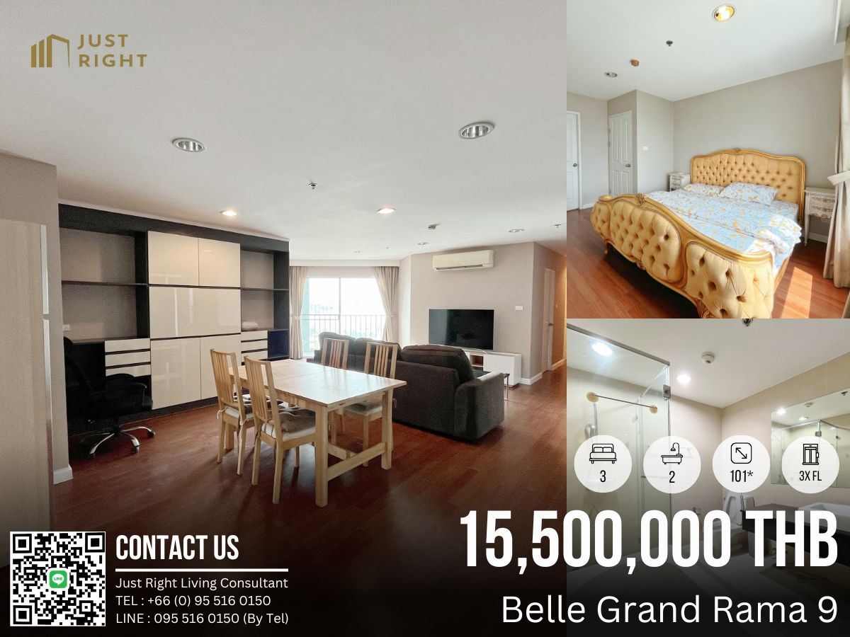 For Sale Belle Grand Rama 9, 3 Bedrooms, 2 Bathrooms, 101* Sqm. A1 Tower, 3X Floor, Free Forest and Electrical appliances, Special price only 15.5* MB (Transfer fee 2% Pay 1%/1% - Buyer/Seller) *Chinese Below* -------------------------------------------------- Type : 3 bedrooms, 2 bathrooms Size : 101* square meters Floor : 3x Furniture and electrical appliances : Fully Provided, Ready to move-in Sale price : 15,500,000 baht *Transfer fee 2% (buyer and seller pay half each)* -------------------------------------------------- For viewing appointment or further more information please contact Tel : Contact number Line : Contact number WhatsApp : Contact number WeChat ID : k Contact number Website : www.justrightlc.com ** If you looking for renting or purchasing condo for in a nearby location, Please feel free to contact us for more information or consultation ** ** If you prefer to rent out or sell out your condo, Please feel free to contact us or consultation ** -------------------------------------------------- 户型 : 3 间卧室,2 间浴室 面积:101* 平方米 楼层:3x 家具电器:全包,可以马上入住 售價:15,500,000 銖 土地厅过户费2% ,双方各付一半 -------------------------------------------------- 如果您有兴趣需要进一步的资料,约看房,请您立即联络,我们有中文服务销售 电话: Contact number 线路: Contact number 瓦次艾普 : Contact number 微信号:k Contact number(扫二维码) 网站:www.justrightlc.com ** 如果您在寻找附近公寓出租或购买,请您联系我们获取更多信息或咨询 ** ** 如果您有房源需要出租/出售 请您联系我们获取更多信息或咨询 **