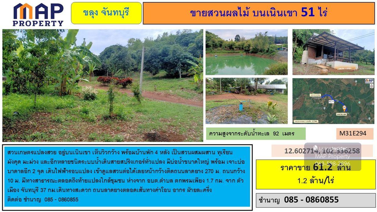 Beautiful agricultural garden On the hill, see a wide view with 4 houses It is a combination of durian, mangosteen, mango, and many other types of springer. There are 2 large ponds and drill wells. Continue to take care of the garden Wide page on the asphalt road 270 meters, width 10 m. There are public roads Near the community, just 1.7 km from the Chanthaburi city from Chanthaburi, convenient to travel. Tinning road along the route, transfer fee, duties Contact expert 085.086.0855