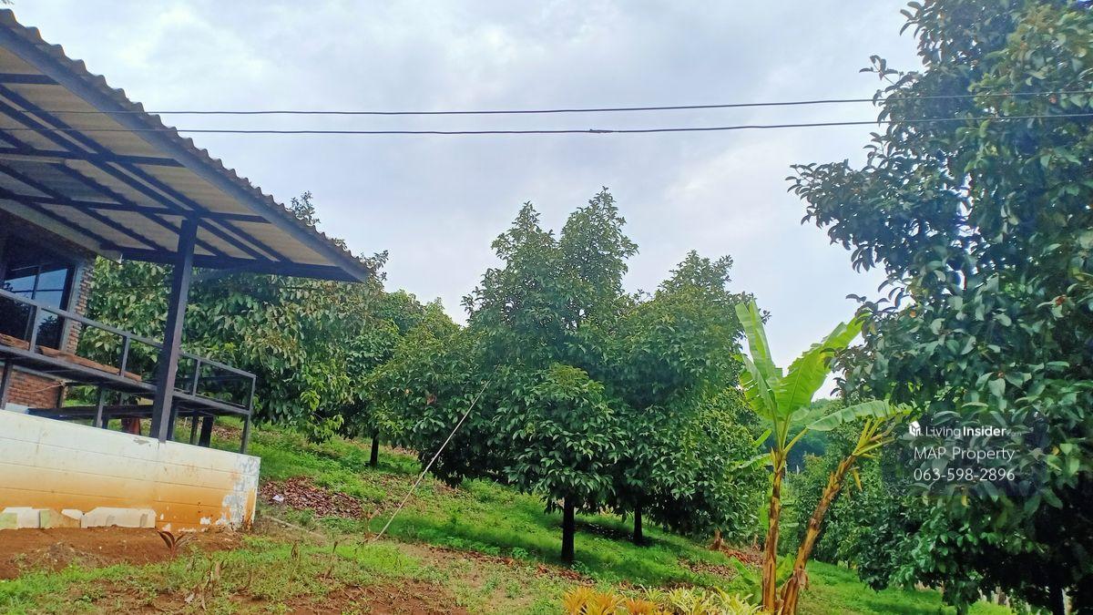 Beautiful agricultural garden On the hill, see a wide view with 4 houses It is a combination of durian, mangosteen, mango, and many other types of springer. There are 2 large ponds and drill wells. Co