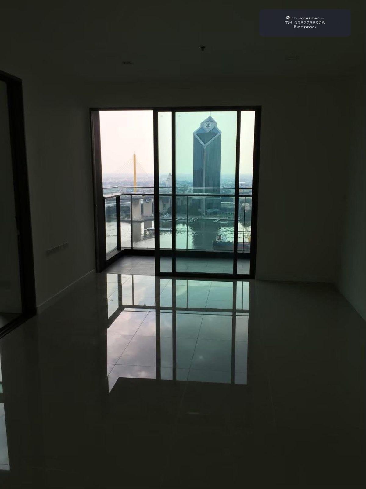 Condo for sale, Star Wee Rama 3, the river view, designed by AE49, strong, supports the wind curve, the Chao Phraya River and the earthquake 2 bedrooms, 2 bathrooms, size 77 sqm. ()-empty room+curtain