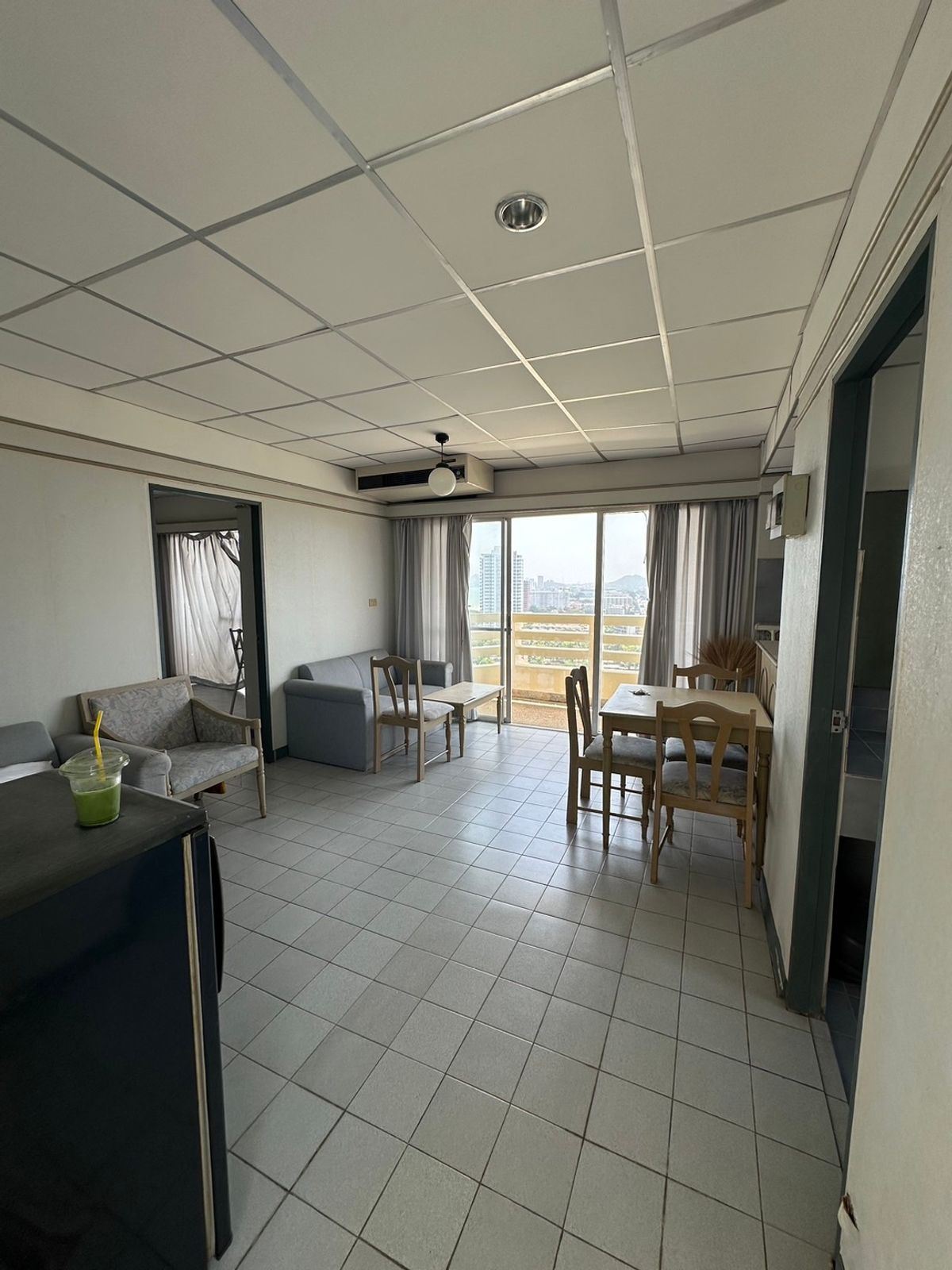 2 bed rooms and 2 bath with living room area with total floor area 32.48 + 61.06 = 93.54 sqm. at the corner of the 19th floor with mountain and sea view. - Access to the beach. - Next to the mall (Market Village)