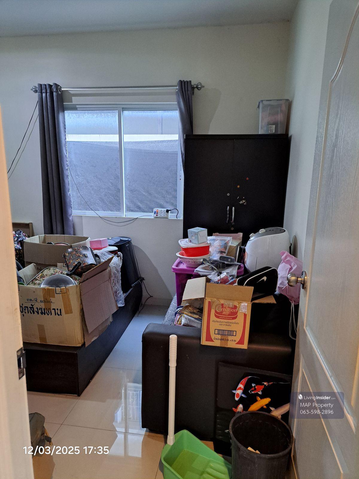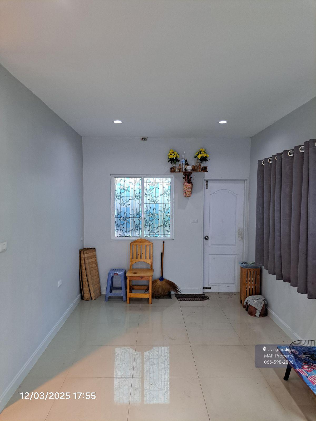 2-storey townhouse for sale at a rim room of 2.55 million baht in the Village, Rama 2 km, 18 km -Size 28.7 sq.w., 97 sqm. -4 bedrooms, 2 bathrooms, 1 multi-purpose hall -The front of the house has a car park with a roof parking space. The back of the house has a washing area -There is a area beside the house, 1.80 meters wide For more information, contact: Khun Kitphon Wichit 086.469.1515