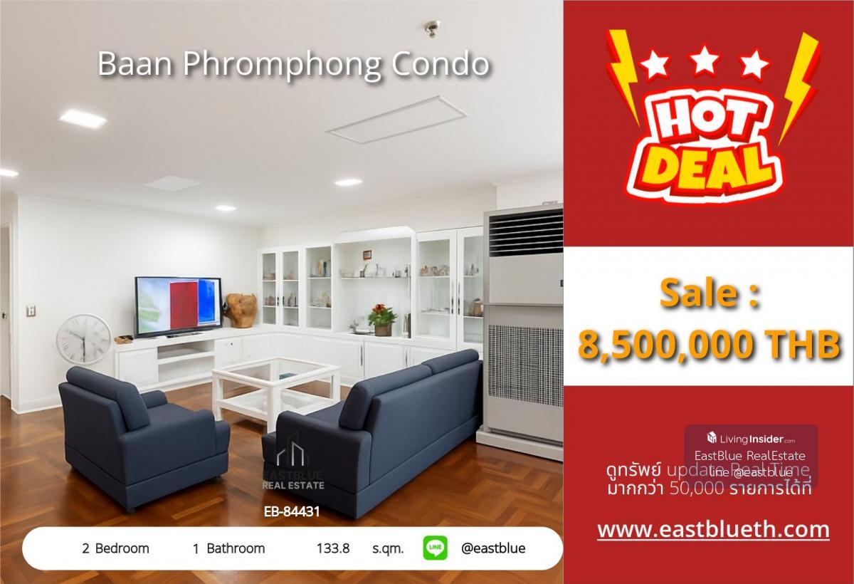 Luxury condo for sale, 2 bedrooms, 1 bathroom, size 133.8 sqm at Baan Phromphong Condo A golden opportunity to own a residence in the heart of Sukhumvit Only 8.5 million THB, ready to move in immediat