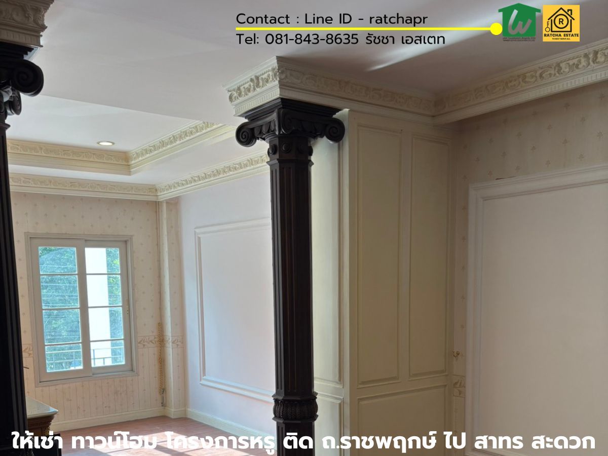 3-story townhome, 5-meter frontage, can park 2 cars inside. Living area 250 sq m on a 32 sq wah plot.Neo Classic style, ready to move in. Home Details: • 3 bedrooms, 3 bathrooms • Living area 250 sq m on a 32 sq wah plot. • 5-meter frontage, can park 2 cars inside. • Neo Classic style. • 5 air conditioners (in every room) • Fully equipped built-in kitchen Project Facilities: • Large swimming pool • Fitness center • Large and shady communal garden • Double Security system Location: • Urban Sathorn Project, Bolero Zone • Address: Ratchaphruek Road, Bang Waek Subdistrict, Phasi Charoen District, Bangkok 10160 • Next to Ratchaphruek Road • Near BTS Bang Wa Station (500 m) Rental Price: 30,000 Baht/month (including common area fees) 3 months deposit, 1 month in advance Contact: Khun Ratcha, (agent: Ratcha Estate) Tel Contact number Line ID: ratchapr Nearby Important Places: • 500 m to #BTSBangWa • 2.5 km to #Phyathai3Hospital • 2.5 km to #SiamUniversity • 3.5 km to #TheCircleRatchaphruek • 3.5 km to #SeaconBangKhae • 4.5 km to #TheMallThaPhra • 5 km to #TheWalkRatchaphruek • 8 km to #Sathon • 9 km to #BangkokChristianCollege • 13 km to #TheMallBangKhae Project Highlights: Luxury townhome in Modern Simplicity style, perfectly reflecting the urban lifestyle. Designed with 270-degree floor-to-ceiling windows for panoramic views. Comfortable living with 2 master bedrooms in a prime location next to the main road, in a private zone.