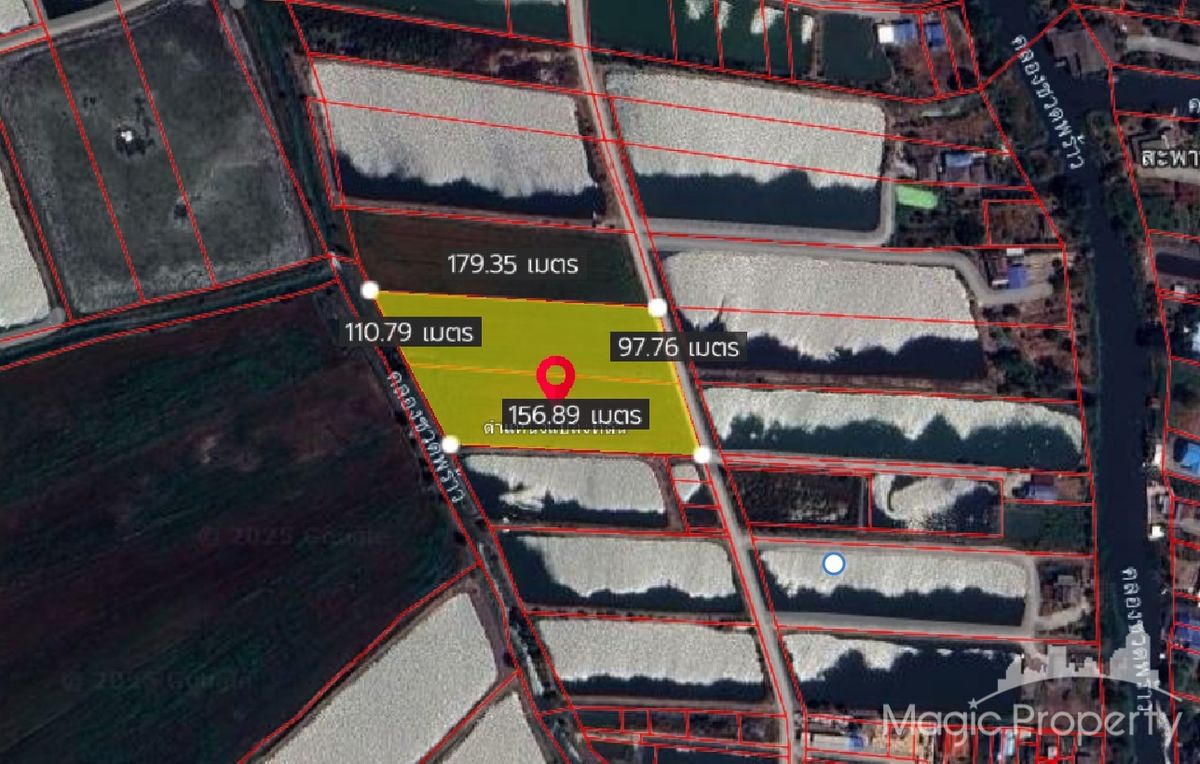 Land for sale in Bang Bo District, Samut Prakan Province Property code MGP1486 Land size 10 Rai 6 Sq. (10-0-6) Yellow area. 3 | FAR 3: 1 | OSR 10% Duties about 110 meters x 180 meters Selling price 33