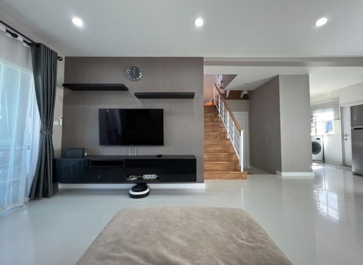 M998 The Plant Simpls Phahonyothin Project-Sai Mai Rental price 25,000 ฿/month (contract expires January 2026) House function 🚩 2-story detached house, 44.1 sq.w., usable area 134 sqm. 🚩3 Bedrooms (on the top floor) -1 large bedroom with 6 feet +BUILD-In wardrobe +dietary table. -Bedroom small 2 with 5-foot bed +wardrobe +dressing table -Small bedroom 3 (open room) 🚩2 bathrooms Bathroom on the ground floor 1 , The upper floor bathroom 1 2 goals in and out (with water heater) 🚩 3 air conditioners -Halls on the ground floor (18,000 BTU) -Bedroom Inverter (12,000 BTU) -Small bedroom Inverter (9,000 BTU) 🚩 Refrigerator 13.5Q Dual Inverter 🚩 hood with a gas stove 🚩 Drinking water filter 🚩 The entire curtain 🚩 L -4 -seat sofa Can be adjusted 🚩 6 seats 🚩Smart TV 55 " 🚩 There are 2 garage roofs 🚩 Water pump, water pump 🚩 The front of the house facing the north ✨ Facilities In front of the project on the main road Silk Road , Club House, Village, Swimming Pool 24-hour security ------------------------------------------------------------------ The Plant Simpls Project Pharin-Sai Mai RENTAL Price 25,000 ฿/Month (Contract Expires Janury 2026) Function 🚩2-Storey Dethaed House, Area 44.1 SQ.W., USable Area 134 SQ.M. + Dressing Table - 2 Small Bedrooms with 5-Foot Beds + Wardrobe + Dressing Table - 3 Small Bedrooms (Open Room) (With Water Heater) 🚩3 Air Conditioners - Ground Floor Hall (18,000 BTU) - Master Bedroom Inverter (12,000 BTU) - Small Bedroom Inverter (9,000 BTU) with Gas Stove 🚩 Water filter 🚩 Sink 🚩 Front-Lading washing Machine 🚩Carport Roof, Can Park 2 Cars 🚩Water Pump, Water Tank 🚩The Front of the House Faces North Clubhouse, Swimming Pool 24-Hour Security