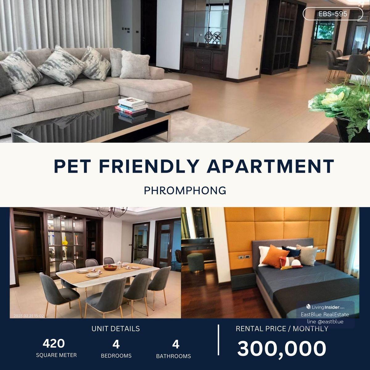 Pet-Friendly Apartment: Phromphong ID: EBS-595 4 Bed 4 Baht Size: 420 SQM Retal Price: 300000 THB PER MONTH - MINIM ONTRACT 6 Month-1 J - -(? For viewing. Line: @eastblue/https://lin.ee/ynwhbfs WhatsApp: Contact number - View More listings on our website: https://ww.eastblueeth.com/-️Co-AGATACT LINE @ Only ❗️❗️