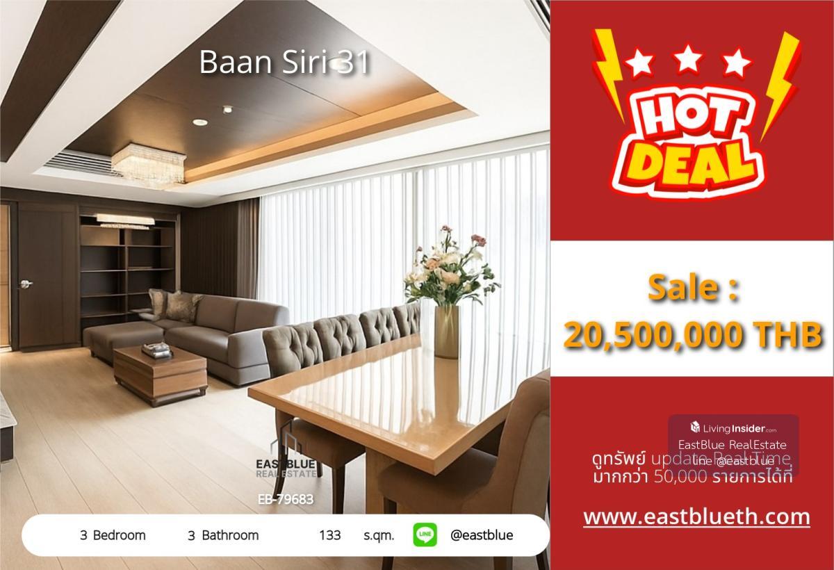 For sale: luxury condo in the heart of the city, answering every lifestyle need at Baan Siri 31 Spacious condo, perfect for families looking for living space, allowing you to live fully in an area of 133 square meters 3 bedrooms, 3 bathrooms, with complete functionality Property details • Usable area of 133 square meters • 3 bedrooms, 3 bathrooms • Sale price: 20,500,000 Baht Project highlights • 24-hour security system • Swimming pool, fitness center, and communal garden • Convenient parking Nearby locations • BTS Phrom Phong Station, 1.2 km away • EmQuartier, 0.9 km away • Emporium, leading department store, 1.0 km away • Sukhumvit Hospital, 2.6 km away • Sai Nam Phueng School, 1.5 km away Meets the needs of city dwellers looking for quality condos, close to important places and complete amenities Interested parties can contact for a viewing EB-79683 #BaanSiri31 #ForSaleCondo #PhromPhong #LuxuryCondo #SukhumvitCondo #BangkokRealEstate