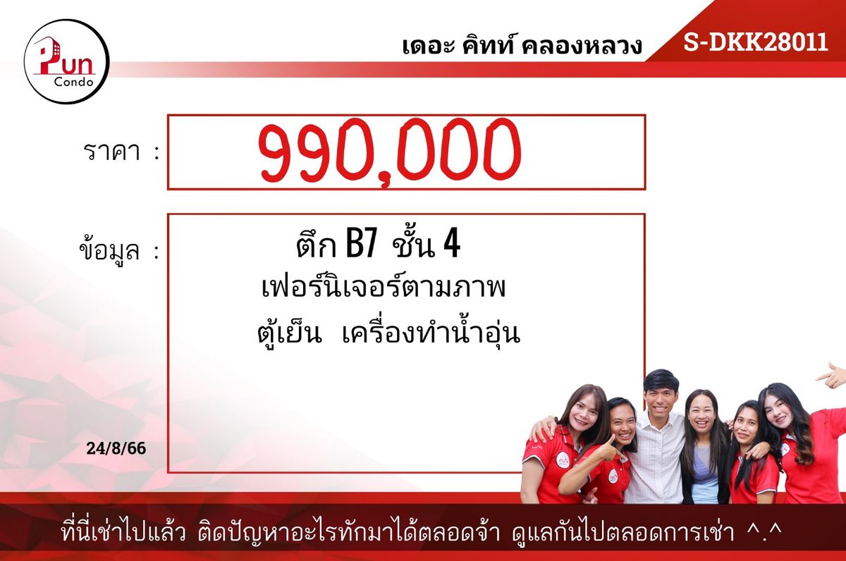 💒#Sell Thekith, Khlong Luang Condo, good location, near Makro Khlong Luang and near Bank Rangsit, beautiful room, complete, bright, comfortable ♦ ️ Price 875,000 baht (S-DKK28016) • More images in the