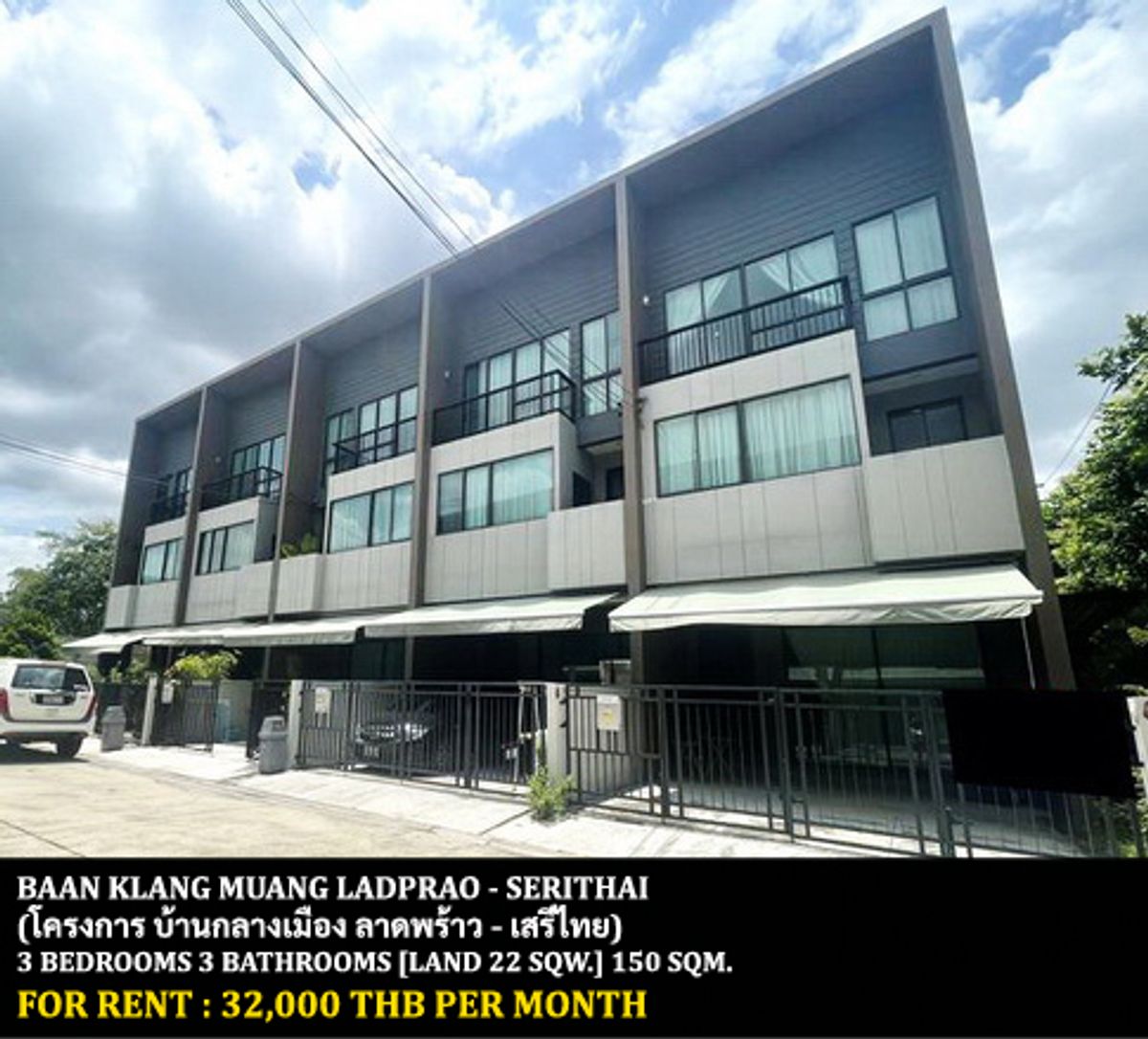 FOR RENT BAAN KLANG MUANG LADPRAO - SERITHAI / 3 bedrooms 3 bathrooms / 22 Sqw. 150 Sqm. **32,000** CLOSE TO SUAN SIAM AMAZING PARK