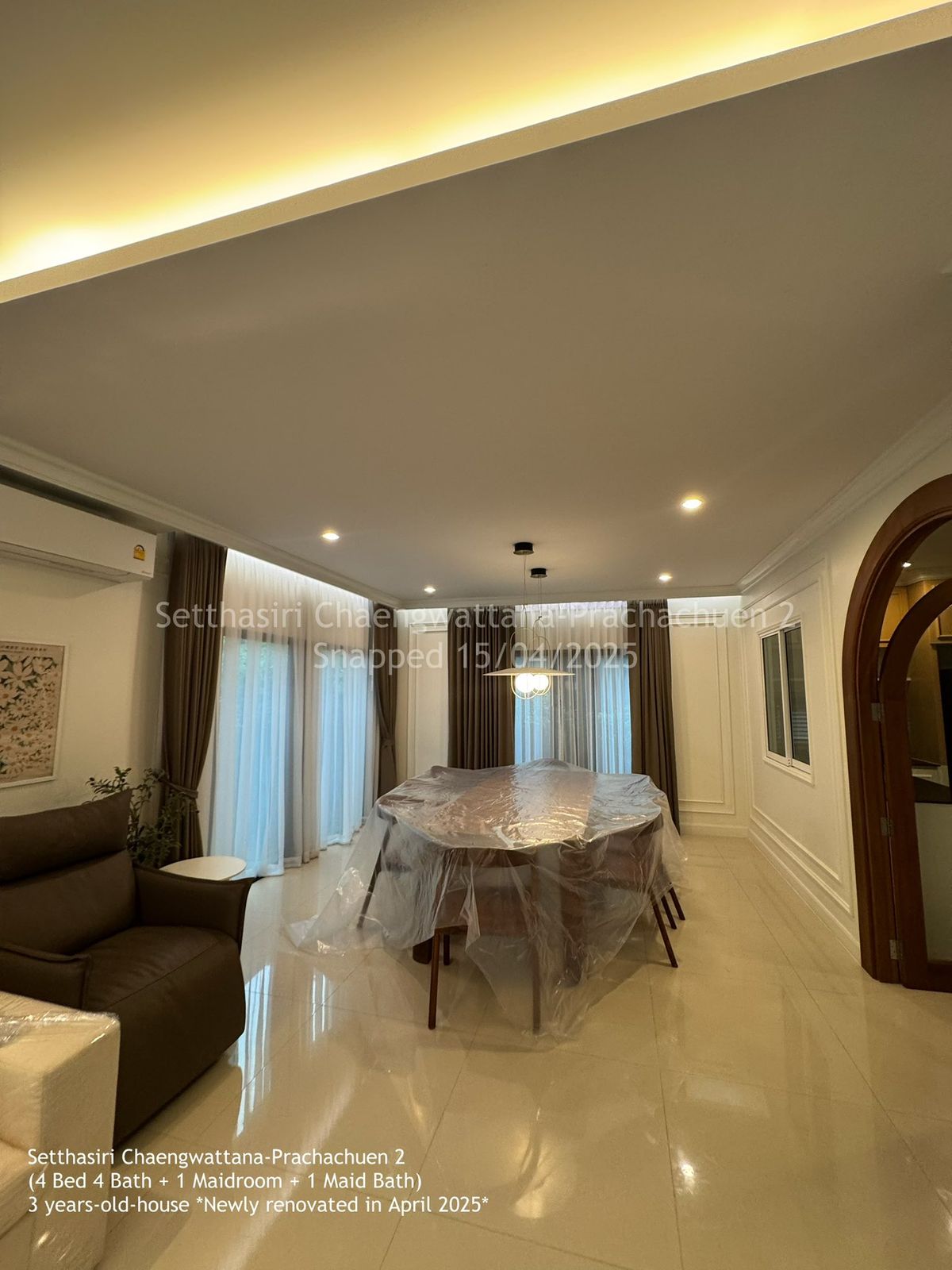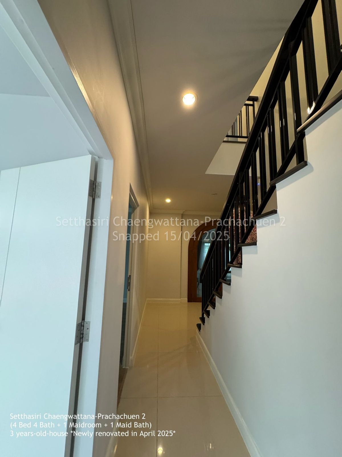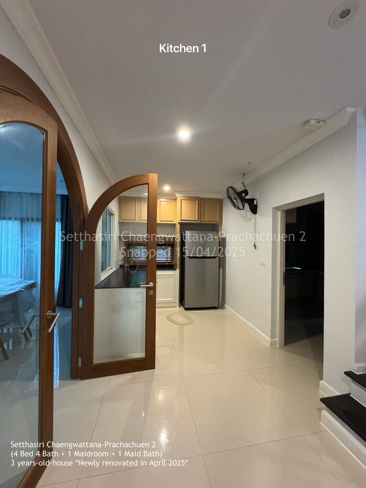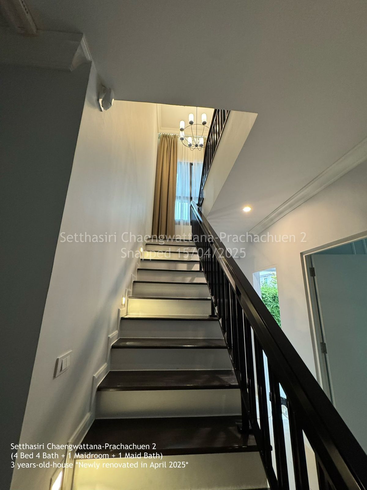 Home for Rent Setthasiri Chaengwattana - Prachachuen 2 Area 74.49 sq.w. Usable area 265 sqm 4 bedrooms, 4 bathrooms 3 parking spaces ** The entire soil wire ** Complete furniture Electrical appliances