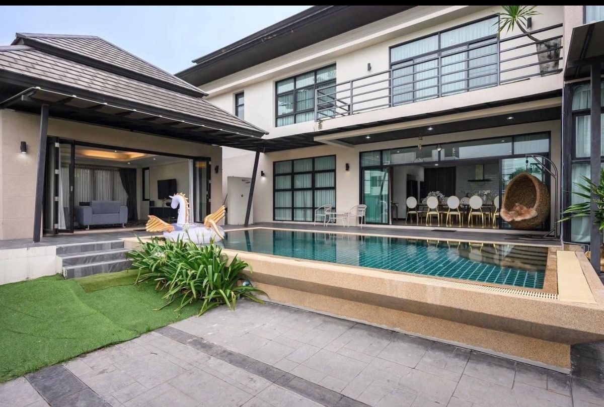 4 -storey house for rent, area of ​​200 sq.w., living area 700, 6 bedrooms, 7 bathrooms, air -conditioned, Sukhumvit 62, Phra Khanong, rental price 100,000 baht/