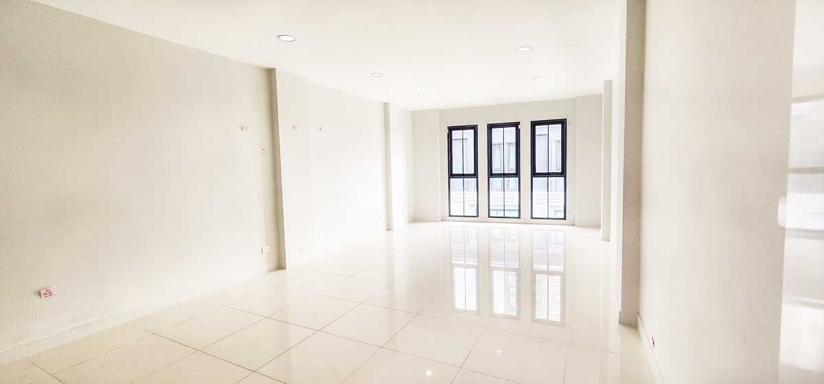 New Retail Unit for Rent. Main Road 3 Floors 30 parking spaces 218 SQM Elevator Double Height 1st Floor 4 Bathrooms 24hr Security 70,ooo THB
