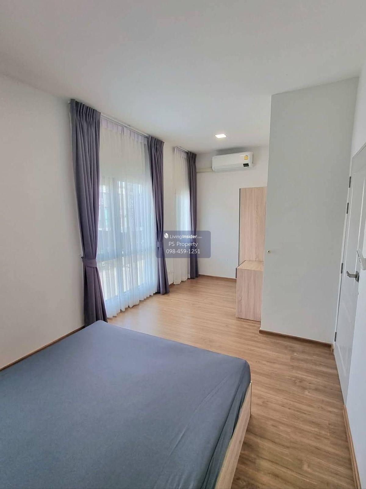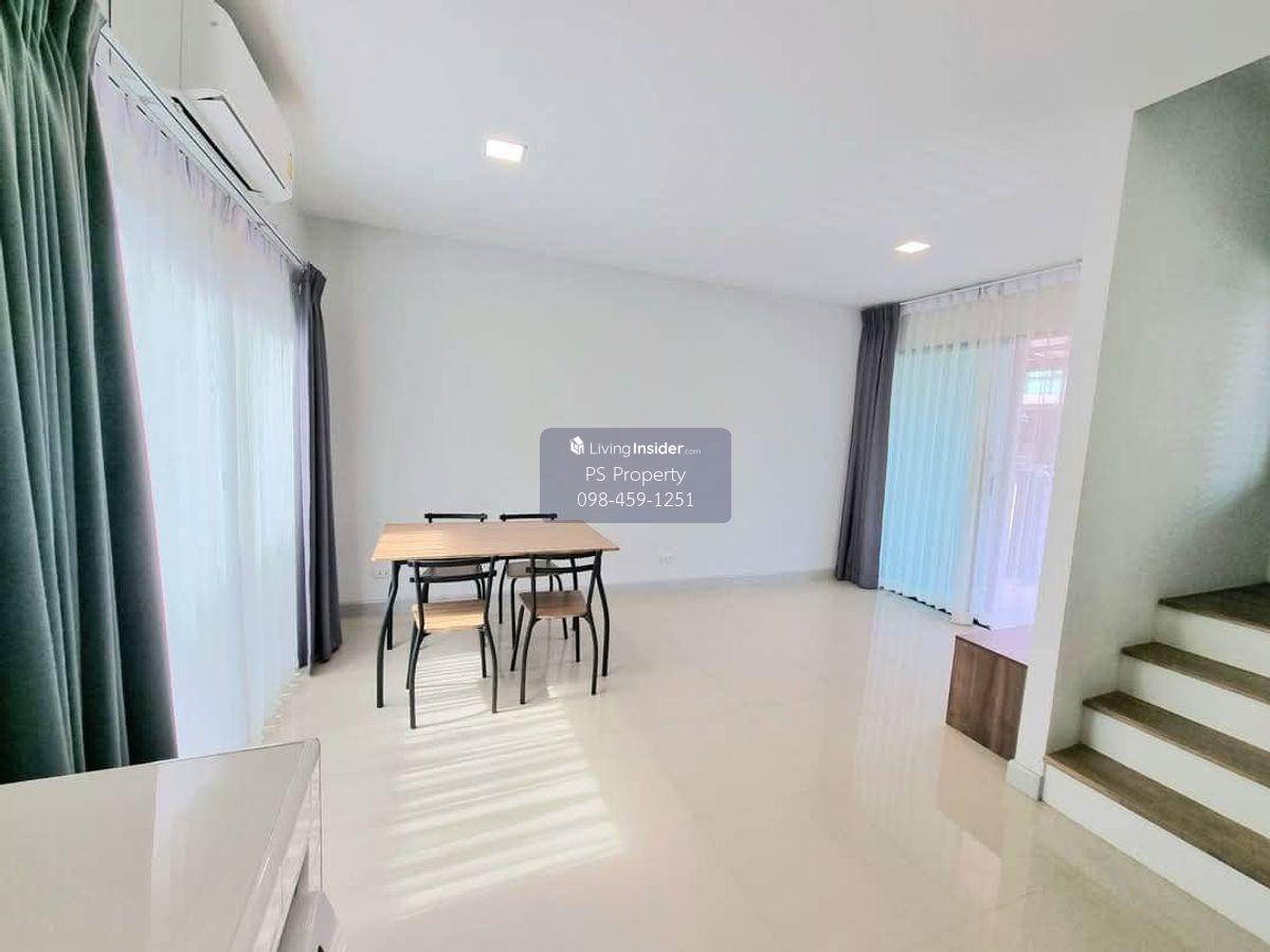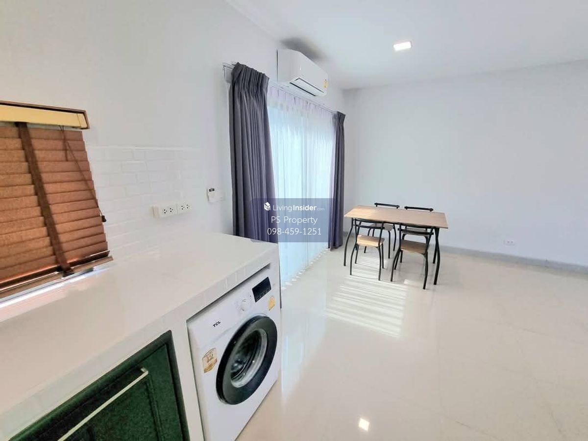 Price: 18,500 baht / month Usable area: 105 sq.m. Area: 17.5 sq.w. Floor: 2 3 bedrooms / 2 bathrooms / 1 living room / 2 parking spaces Amenities: CCTV, key card Access, fitness center, swimming pool, 24/7 security guard, co-working area, common area. Furniture included: TV, microwave, sofa, refrigerator, bed, air conditioner, water heater, Smoke Dispenser, shelf, TV cabinet, wardrobe, center table. House for rent! convenient transportation, near BTS, near the expressway, fully furnished Ready for viewing. Interested please contact: 📞Call center: Contact number 📱Hotline: Contact number 📲Whatsapp: Contact number 🖱️Line: @psproperty https://lin.ee/d8bpOBs Website: https://www.ps-property.co.th/m