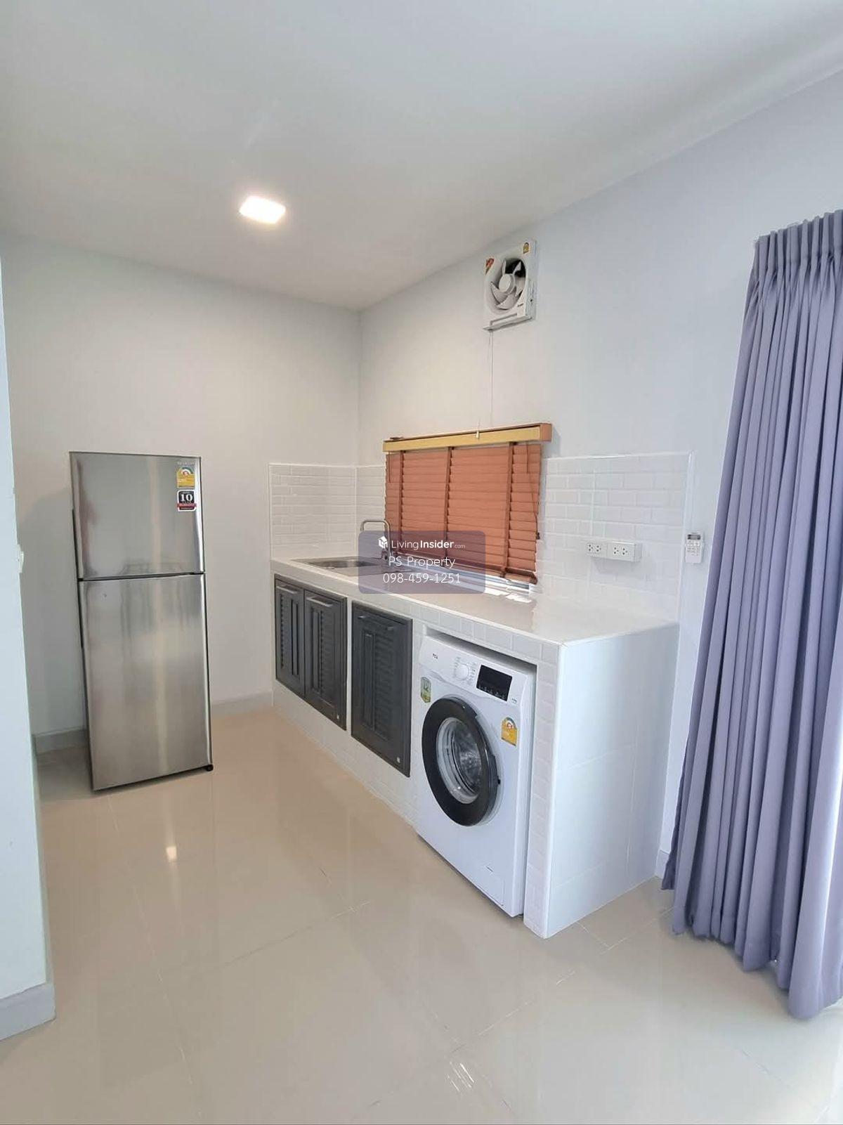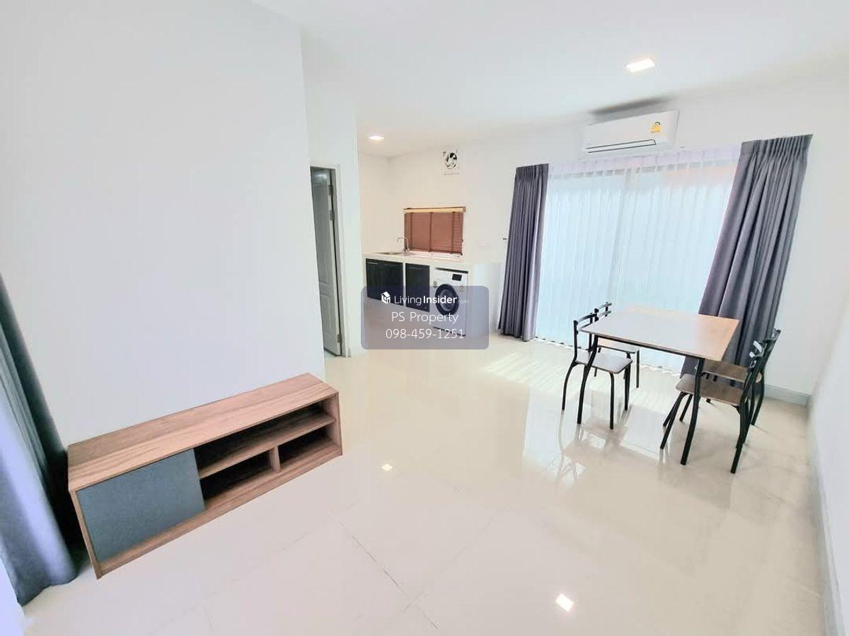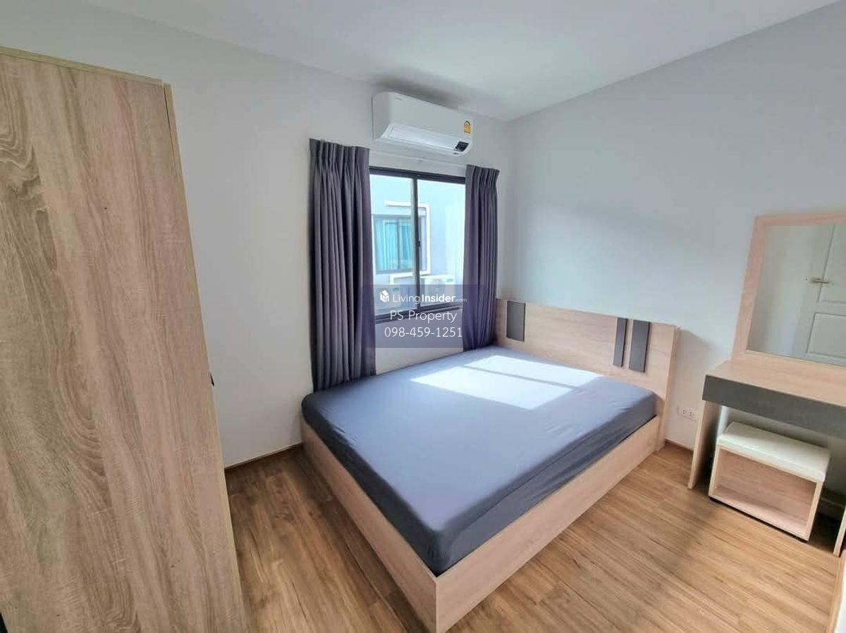 Price: 18,500 baht / month Usable area: 105 sq.m. Area: 17.5 sq.w. Floor: 2 3 bedrooms / 2 bathrooms / 1 living room / 2 parking spaces Amenities: CCTV, key card Access, fitness center, swimming pool, 24/7 security guard, co-working area, common area. Furniture included: TV, microwave, sofa, refrigerator, bed, air conditioner, water heater, Smoke Dispenser, shelf, TV cabinet, wardrobe, center table. House for rent! convenient transportation, near BTS, near the expressway, fully furnished Ready for viewing. Interested please contact: 📞Call center: Contact number 📱Hotline: Contact number 📲Whatsapp: Contact number 🖱️Line: @psproperty https://lin.ee/d8bpOBs Website: https://www.ps-property.co.th/m