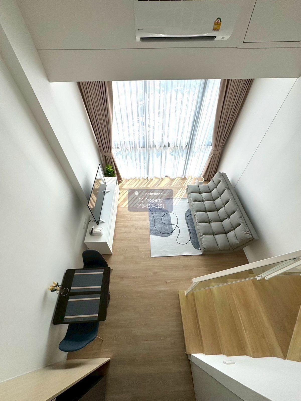 Price: 22,000 baht / month Size: 37 sqm. Floor: 17 Room type: DUPLEX ONE BEDROOM Facilities: Convenience store, CCTV, key card Access, Swimming pool, Fitness Center, laundry room, 24hrs security guard, Furniture: TV, Sofa, Storage, Shelves, Air conditioners, Cabinets, Built-in Wardrobes, Microwave, Refrigerator, Washing Machine. Fully Built-in, fully furnished! Near BTS, near the expressway, ready to move in! Interested please contact: 📞Call center: Contact number 📱Hotline: Contact number 📲Whatsapp: Contact number 🖱️Line: @psproperty https://lin.ee/d8bpOBs Website: https://www.ps-property.co.th/
