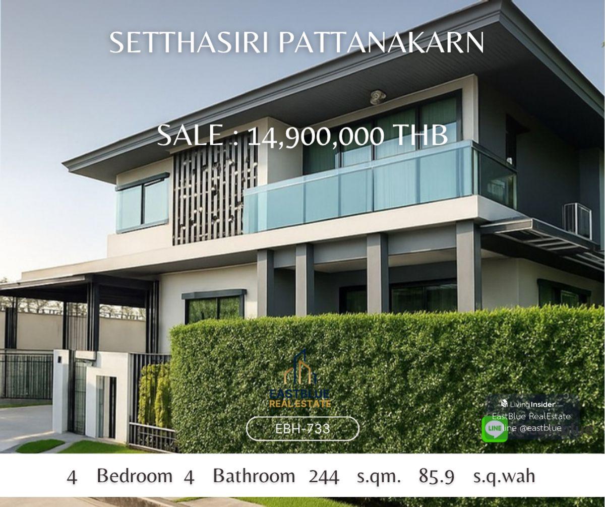 🔥Rare unit, Good Price 4B3B 15.9MB - Setthasiri Pattanakarn 📞Call Contact number. Project: Setthasiri Pattanakarn ID: EBH -733NAR 4 Bed 3 BaHT (? 244 SQM (? : 85.9 sq.wah Selling Price: 15,900,000 THB Contact, Appointment for viewing. Line: @eastblue/https://lin.ee/ynwhbfs Website: https://www.eastblueeth.com ❗️❗️Co -Agent Contact Line@ only 🔥) ' Only House in the Alley ' ;, Corner Unit Facing is North Side 🚩4 Bedrooms, 3 Bathrooms, 1 Maid ) 2 Parking Spaces, 1 Electric Cargage (? Due !! Just 15.9MB❤️🔥 Price/SQ. Wah: 185, xxx baHT Market Price: 211, xxx Baht Many Road 🌟ON Nut Road 🌟Srinakarin Road 🌟Sukhumvit 103 Road 🌟Connemed to Bangna-Trad Road Road 18.14MB) - 🔥Rare unit, very good price 4B3B 15.9MB-Setthasiri Pattanakarn 📞Call Contact number 🏡rare !! ' The only one in the alley ' No corner plots on the right hand side Turn the north 🚩4 Bedroom 3 bathrooms, 1 housekeeper 2 Parking with 1 electric train ❤️🔥 Very cheap !! Only 15.9MB❤️🔥 Price/sq. Wa: 185, xxx baht Market price: 211, xxx baht Modern Classic style house that is elegant but elegant in every detail The project is located on the potential location. Convenient to travel Can access many routes 🌟 Onnut Road 🌟 Srinakarin Road 🌟 Sukhumvit Road 103 🌟 Also connected to Bang Na-Trat Road 🌟 including convenient access to the city. Srirat Expressway And the external ring expressway 🌟 In addition, it is not far from the Airport Rail Link, Hua Mak Station Information () Type: Single Home 2 floors - 4B3B Land size: 85.9 sq.w. The living area: 244 sq.m. Price: 15.9 million baht (reduced from 18.14 million baht) Loan service ✅ We take care from the beginning Until the transfer date ✅ Guaranteed to contact the owner directly !!! ✅ Have real property !!! ------ Interested contact / contact Nares (NARED (NARED) Tel.: 096-8953 Line ID.A (https://line.me/ti/p/BC4B592QRP) There are many houses and condos. For more information 😊