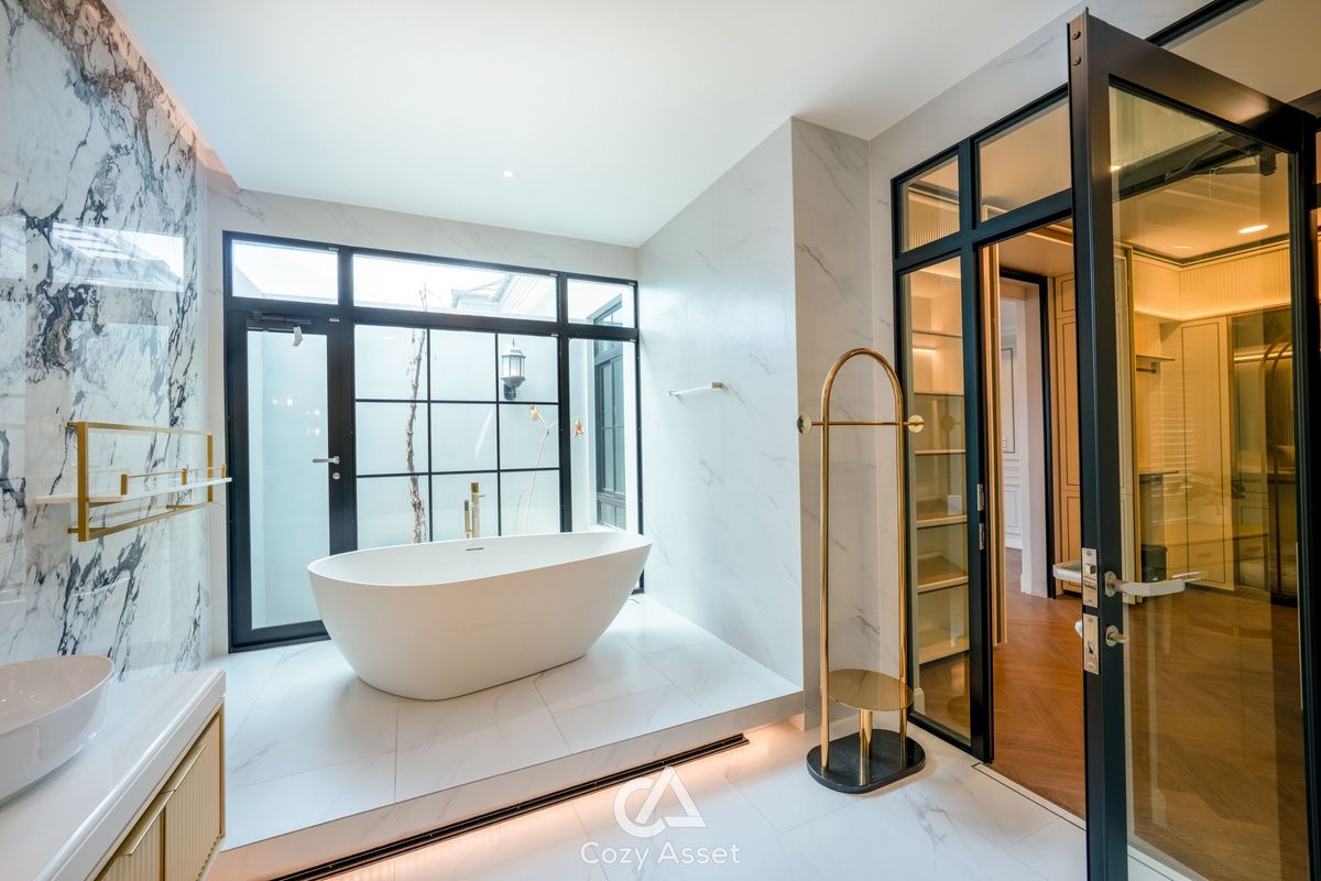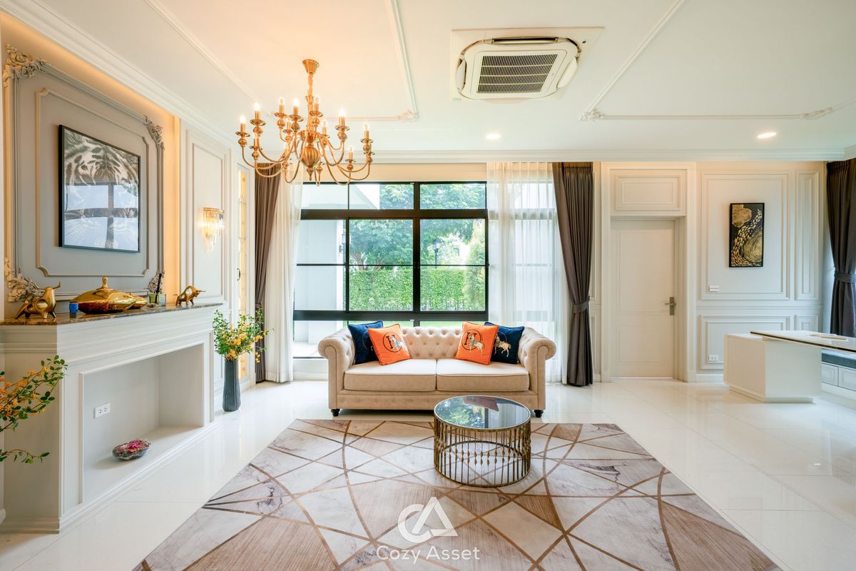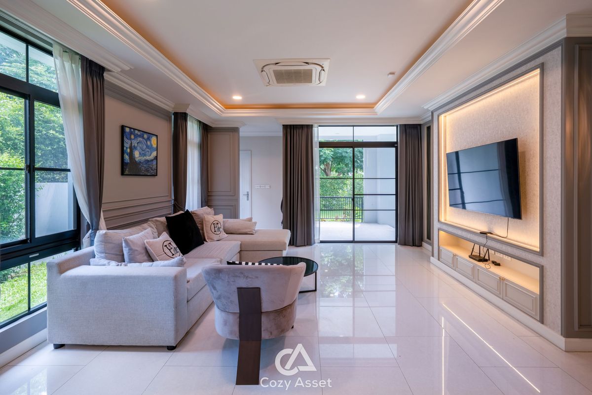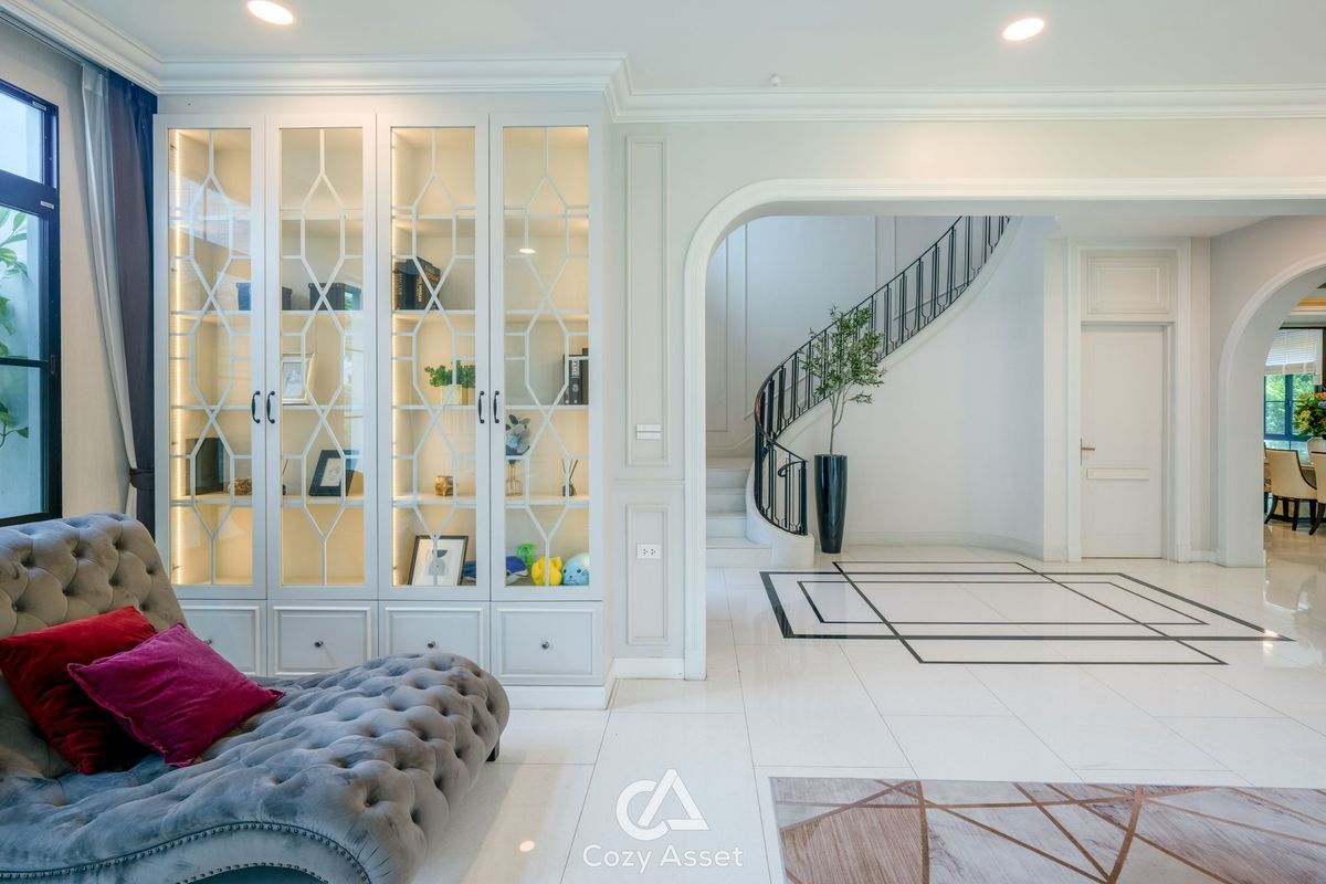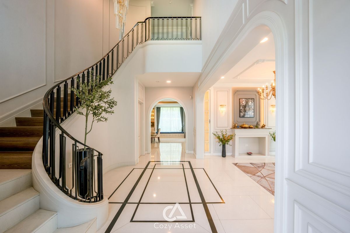 For Sell: 95 MB - Nantawan Rama 9 Krungthepkreetha For Rent: 650K Nantawan Rama 9 Krungthepkreetha, 5 Beds 7 Baths, 2 Storey House, 608 SQ.M. 203 SQ.WA. Detail : 5 Bedrooms 7 Bathrooms, 2 Maid Room, 4