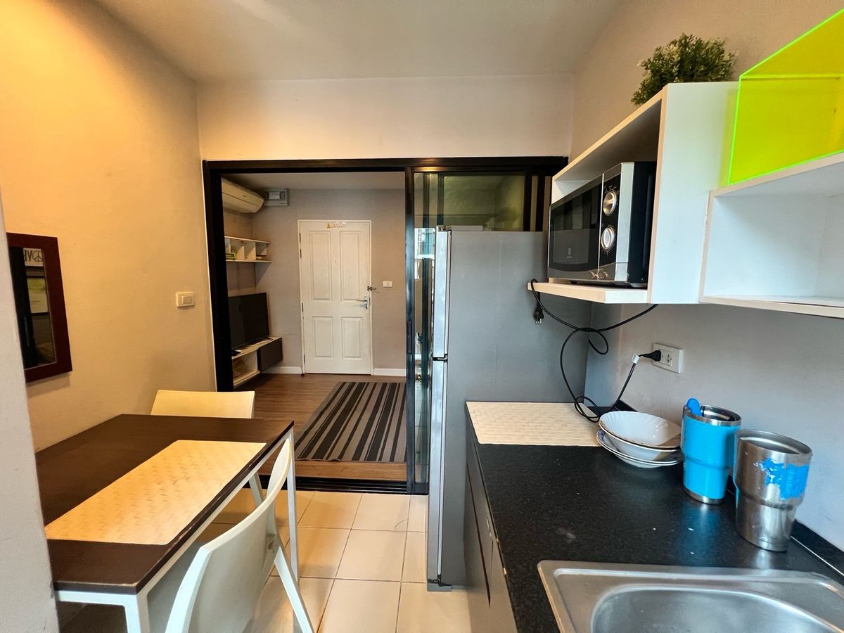 Condo for rent, Hallmark Ngamwongwan 25 sqm. Corner room (1 bedroom, 1 living room, 1 bathroom, 4th floor, Building A) 2 air conditioners Microwave Refrigerators Beds Furniture Price for rental/month