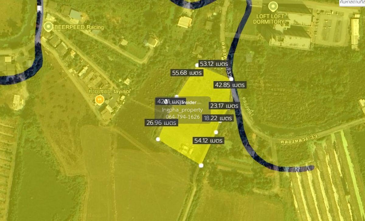 Details Land size: 5 - 2 - 46 rai (2,246 square meters) Wide page, next to Soi Khlong Luang Road 33: about 29 meters Beautiful plots Near the square Yellow city plan (Little housing type) Suitable for developing projects, housing, apartments, dormitories, townhouses, restaurants, cafes, etc. Not yet ✅ The highlight of the land: - Near the study source, community and main road - Convenient transportation near both Thammasat University and Bangkok University - Wide soil road Convenient entry-out 📍 Nearby places: - Thammasat University, Rangsit 900 m - Bangkok University 9.9 km - Thai Market 9.2 km - Future Park Rangsit 15 km - Phahonyothin Road, about 5.3 kilometers - Location: Khlong Nueng Subdistrict, Khlong Luang District Pathum Thani Province Https://maps.app.goo.gl/sdktzomva7QDrtan9 Selling 37,500 baht/square wah Total price 84,225,000 Baht The day of the transfer day +-+-+++----+-+-++++- More details Contact Ingha Property Tel. Contact number Line: Contact number Facebook Page: Ingpha Property Winner Education Co., LTD All kinds of real estate Free marketing And happy to provide real estate consultations.