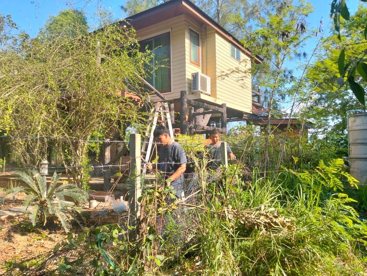 2-storey detached house and tree house on the area of ​​2 rai with title deeds - 3 bedrooms, 3 bathrooms - Guest room - The dining room prepares Thai kitchens behind the house - The front of the house