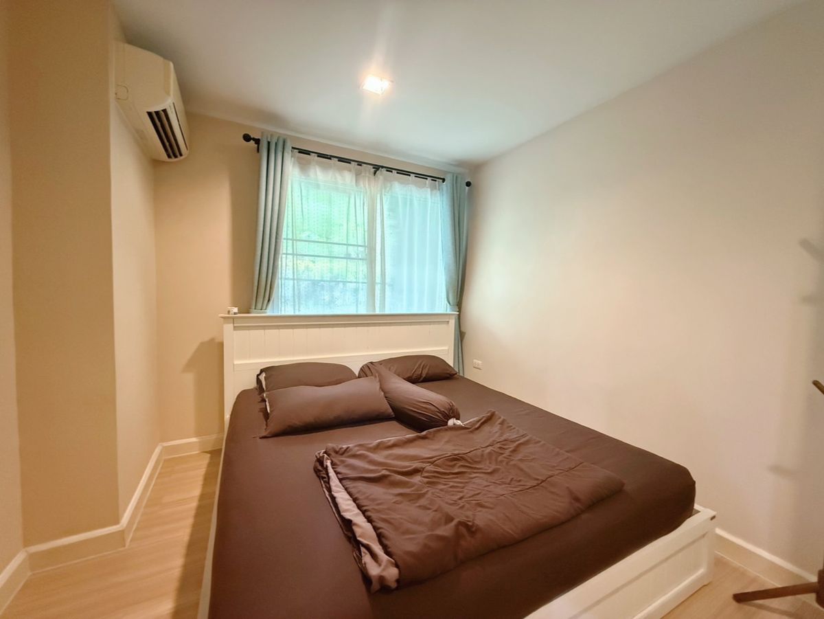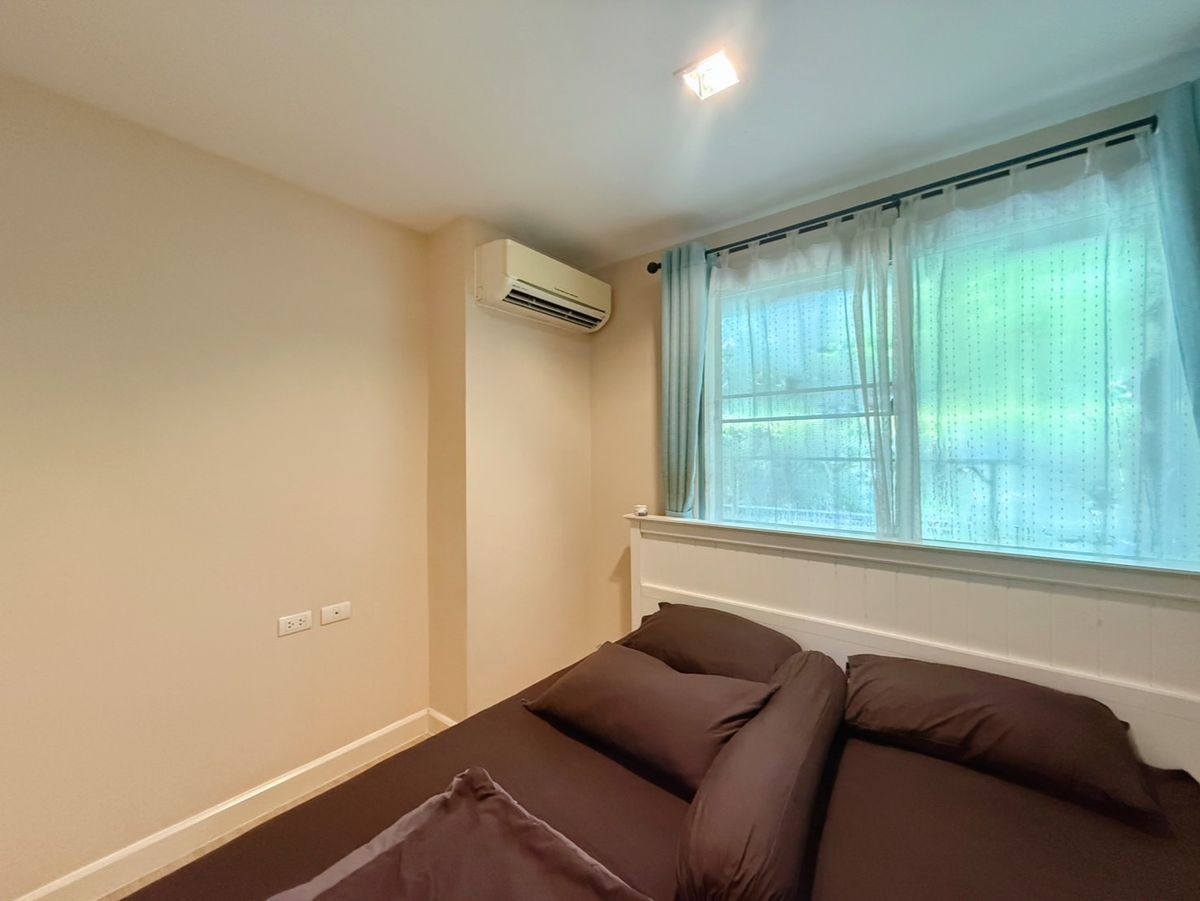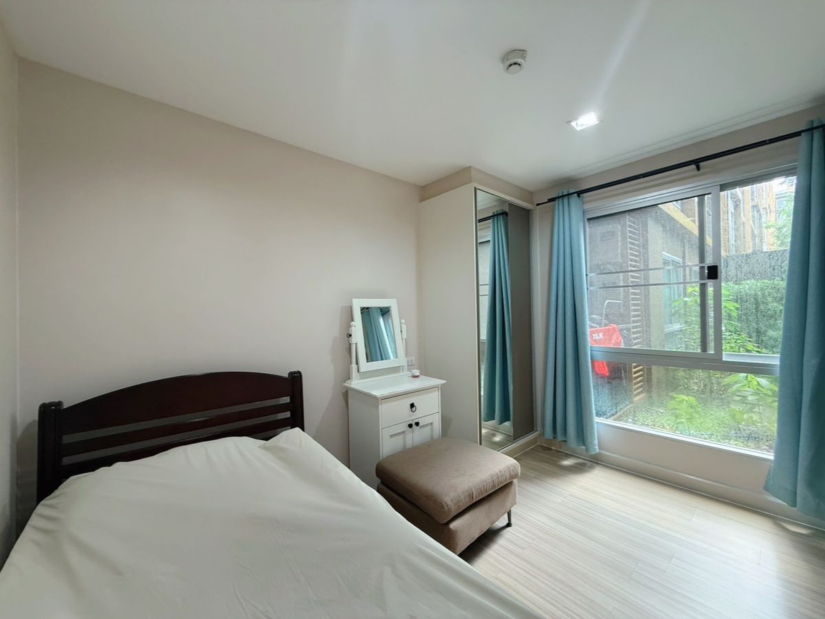 For rent, Metro Luxe Kaset condo For rent Metro Luxe Kaset Near BTS Kasetsart University Bangkhen station, only about 5 minutes away, near Kaset-Senanikhom intersection, on the main road, no need to enter the alley Conveniences in the project include a swimming pool, fitness center, recreation room, parking lot, 24-hour security system. Building B, 1st floor, balcony next to the garden, 52 sq m room, 2 bedrooms, 1 bathroom, fully furnished and equipped with 3 air conditioners, TV, refrigerator, microwave, water heater, washing machine, ready to move in immediately Price 17,000 baht/month For more information, please contact Khun Koi, Tel/Line: Contact number