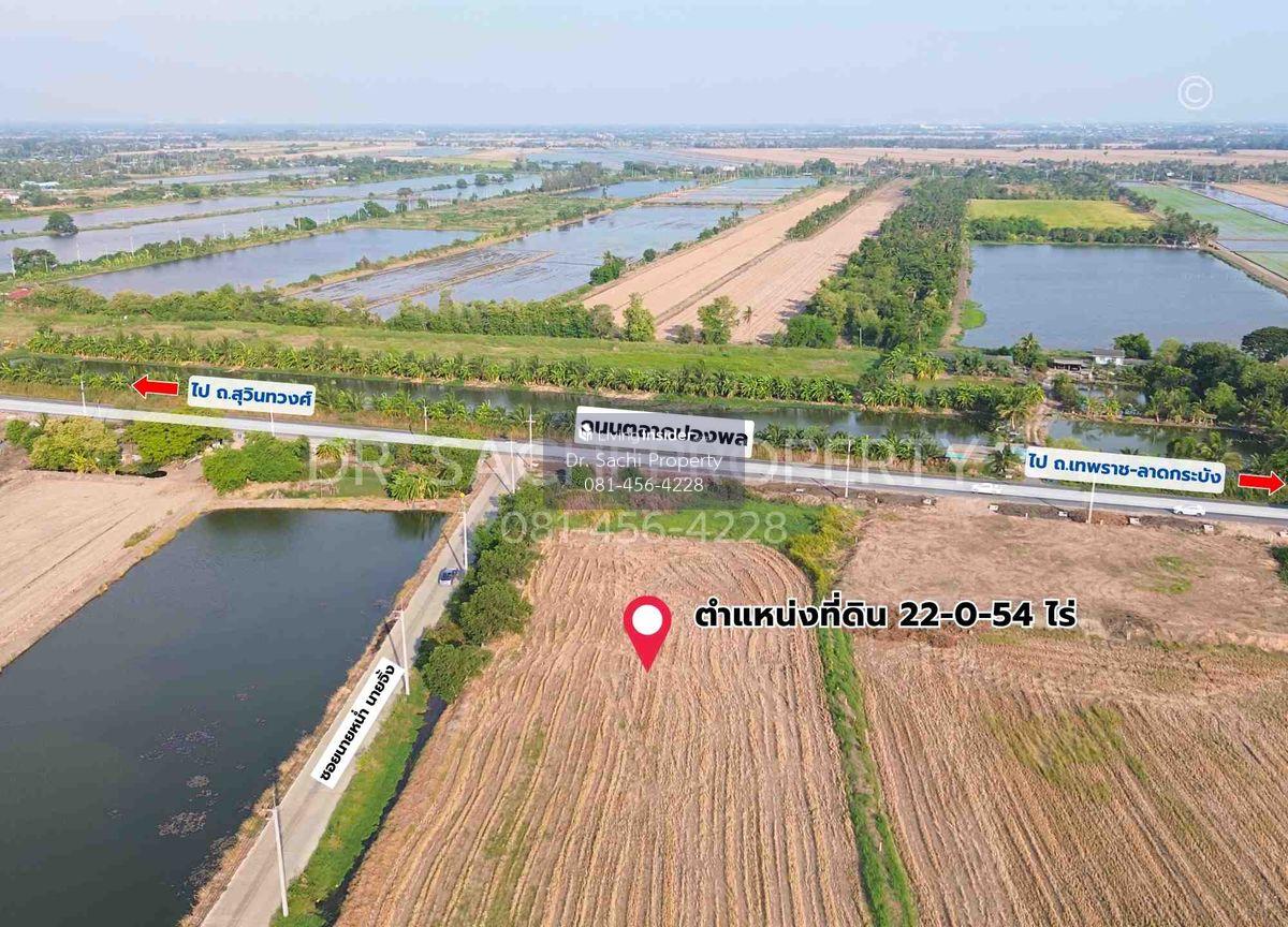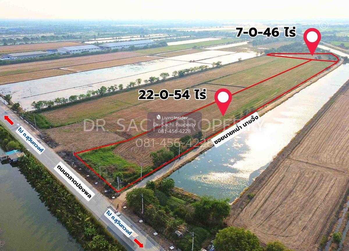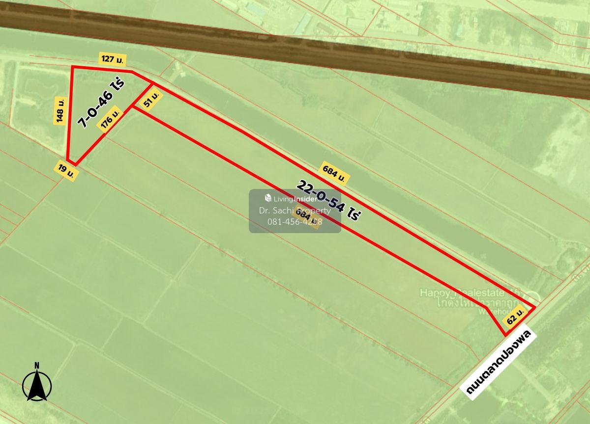 Property ID : M68031 Beautiful corner plot, on 2 sides of the road, 4-lane Pongpol Market Road (expanded), prime location for investment (can be divided for sale) - 2 plots of land, total area 29 rai 1 ngan (11,700 sq.w.) - Plot 1, land 22-0-54 rai (width 61 m., depth 684 m. approximately) - Plot 2, land 7-0-46 rai (width 127 m., depth 176 m. approximately) - Land on 4-lane main road, public road length 61 m. - Land on 2-lane alley, width 6.5 m., concrete road, public road length 812 m. - Land facing east - Land, green city plan - Water supply - electricity Access -------------------------------------------------------- ** Total price for 2 plots: : 124,500,000 baht (10,641 baht/sq.w.) ** (Price per rai 4,256,400 baht) (Transfer fee, each pays half) ** Selling price for 2 plots separately ** (22-0-54 rai, price per rai 4,500,000 baht) (11,250 baht/sq.w.) (7-0-46 rai, price per rai 3,500,000 baht) (8,750 baht/sq.w.) -------------------------------------------------------- : : Features : : - Very good location, on the main road, large trucks can enter, near the industrial area - Convenient transportation, can enter and exit via many routes, near Suwinthawong Road 9.4 km, Theparat-Lat Krabang Road 4 km, Bangna-Trad Road 16 km - Near communities, educational institutions, hospitals, markets, government offices - Suitable for agriculture, building houses Villages, resorts, factories, warehouses, storage buildings, etc. -------------------------------------------------------- Location : : Soi Nai Nam Nai Ching, K. Khlong Udom Chonlachon, Mueang District, Chachoengsao Province 24000 Google Map : : https://maps.app.goo.gl/VEQ1xsCFLFD3eXbQ9 -------------------------------------------------------- : : Nearby landmarks : : - Preng Railway Station 1.3 km. - Khlong Preng Subdistrict Administrative Organization 1.8 km. - Wat Preng Rat Bamrung 4 km. - Pongpol Fresh Market 9 km. - Big C Preng Distribution Center, Chachoengsao 3 km. - Unilever Distribution Center, Chachoengsao 6 km. - Asia Suvarnabhumi Industrial Estate 9 km. - Khlong Suan 100 Years Market 11 km. - Wat Wirachottharam 20 km. - Suvarnabhumi Airport 24 km. - Robinson Lifestyle Chachoengsao 25 km. - Wat Sothon Wararam Worawihan 26 km. -------------------------------------------------------- : : For more information, please contact : : Ms. Chatsachee Chatpapamon (Aom) (affiliated with the Thai Real Estate Brokers Association) Tel : Contact number LINE ID : dr.sachiproperty LINE OA : @dr.sachiproperty Facebook : Dr. Sachi Property