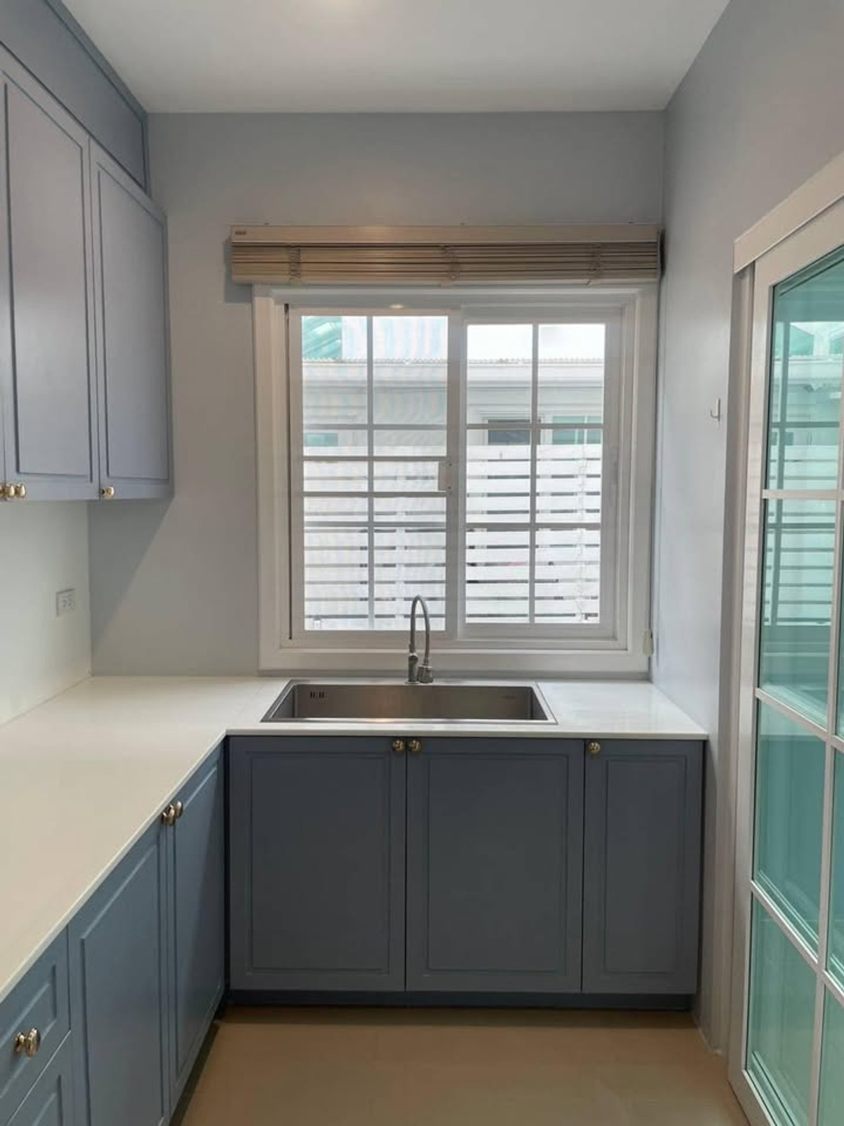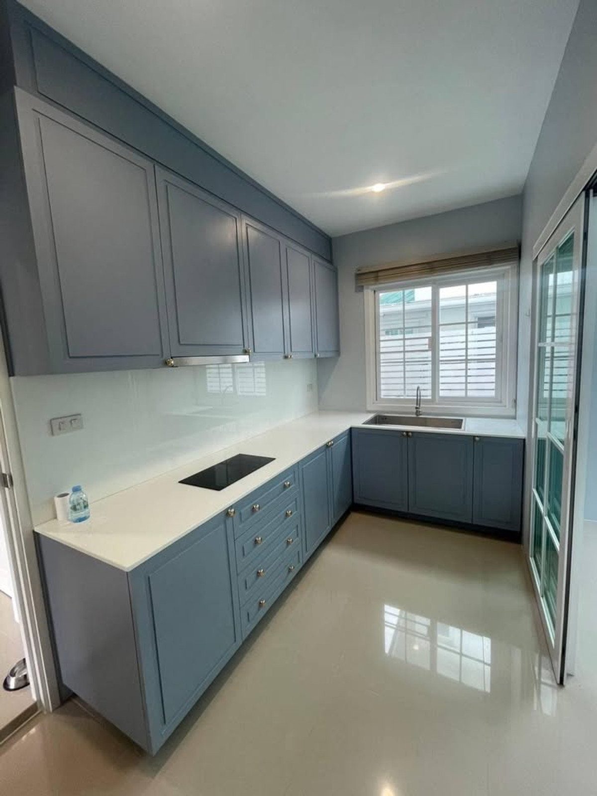 Details -There are 4 bedrooms, 3 bathrooms -5 air conditioners Fully furnished - Area 39 square meters, 143 square meters - There is a common area with a swimming pool and fitness center. Playground - there 24-hour security guard and CCTV -In front of the village there is Lotus and 7-Eleven Nearby places-Chocolate Ville -Ramintra Express -Central Eastville -Crystal Park -The Mall Bangkapi -Lertlah School-Vejthani Hospital -Phayathai Hospital Convenient travel, can exit in many directions. Easy to get on the expressway ****Rental price 40,000 baht per month**** Contact Ms. Aranya Tel. Contact number, Contact number Line : Contact number www.LtcPropertythai.com has houses and townhouses in many locations for rent
