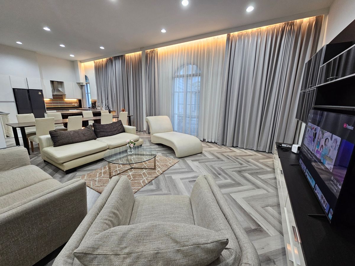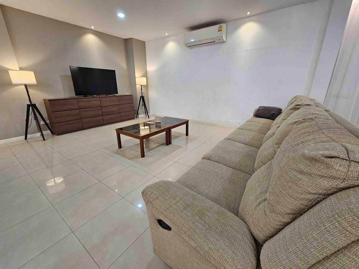 Ban Klang Krung, Rama 3 For rent, townhome, Rama 3, very good location, convenient to travel with 425 sqm. 4 bedroom function, 6 bathrooms In front of the house, up to 11 meters wide, parking 6 cars Rent only 150,000 baht per month (? WhatsApp) #Ban Rama 3 #Townhome Rama 3