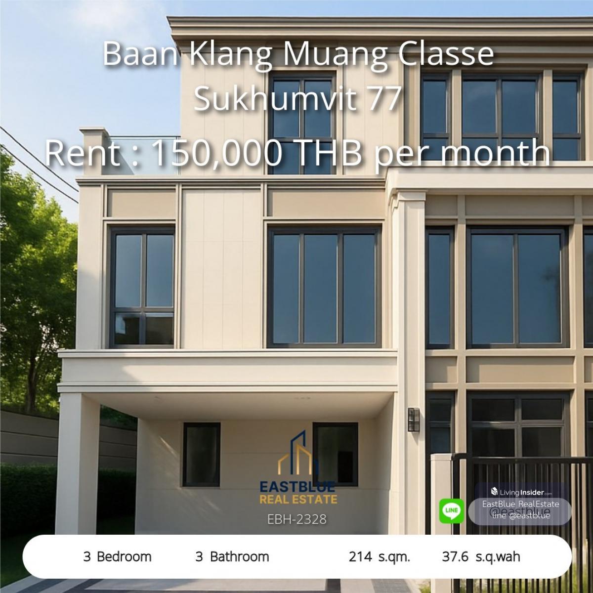 Project: Baan Klang Muang Classe Sukhumvit 77 ID: EBH-2328PHz 3 泰铢 3 泰铢 房屋面积: 214 平方米 土地面积: 37.6 平方佤 租金: 130,000 THB PERTH /https://lin.ee/ynwhbfs WhatsApp: Contact number View More listings on our website: https://ww.eastblueeth.com Land Area: 37.6 SQ.WAH: 130,000 ThBE Month Contact, Appointment for Viewing. Line: @eastblue/https://lin.ee/ynwhbfs WhatsApp: Contact number View More listings on our website: https: //www.eastblueeth.com- ❗️❗️Co-Agent Contact Line@ only ❗️❗️ Project: Baan Klang Muang Classe Sukhumvit 77 ID: EBH-328PHz 3 BAHTT 214 SQM Land Area: 37.6 SQ.WAh RENTAL PRICE: 130,000 THB per Month Contact, Appointment for Viewing. Contact number View More listings on our website: https: //www.eastblueth.com-