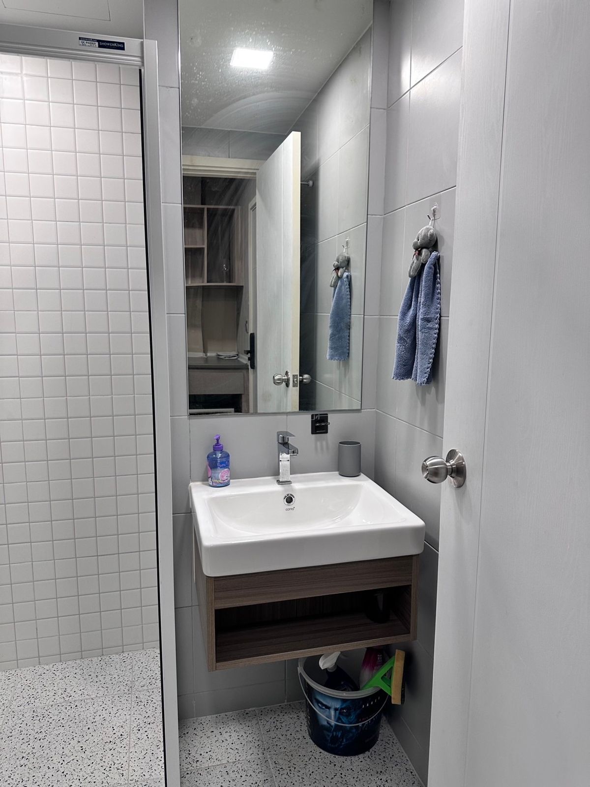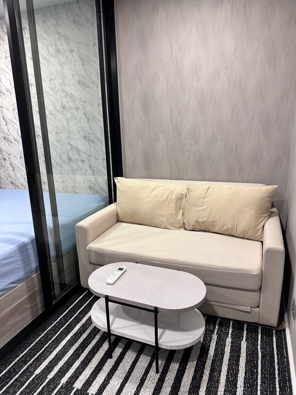Building A, Floor 3, 1 Bedroom 1 bedroom, 1 bathroom, size 24.50 sqm. Details in the room: -SMART LOCK Gate -Bluetooth Sound System Speaker System -TV)-Bed with mattress, pillow pillow And head head -Air -Microwave -Water heater -1 set of work desks -Sofa, adjustable -Central table **** Rent 9,500 baht/month (1 year rental contract) ***** 2-month room insurance Total rental 3 months. More information Tel: Contact number Line: Contact number Bargain price If interested, say hello to the room.