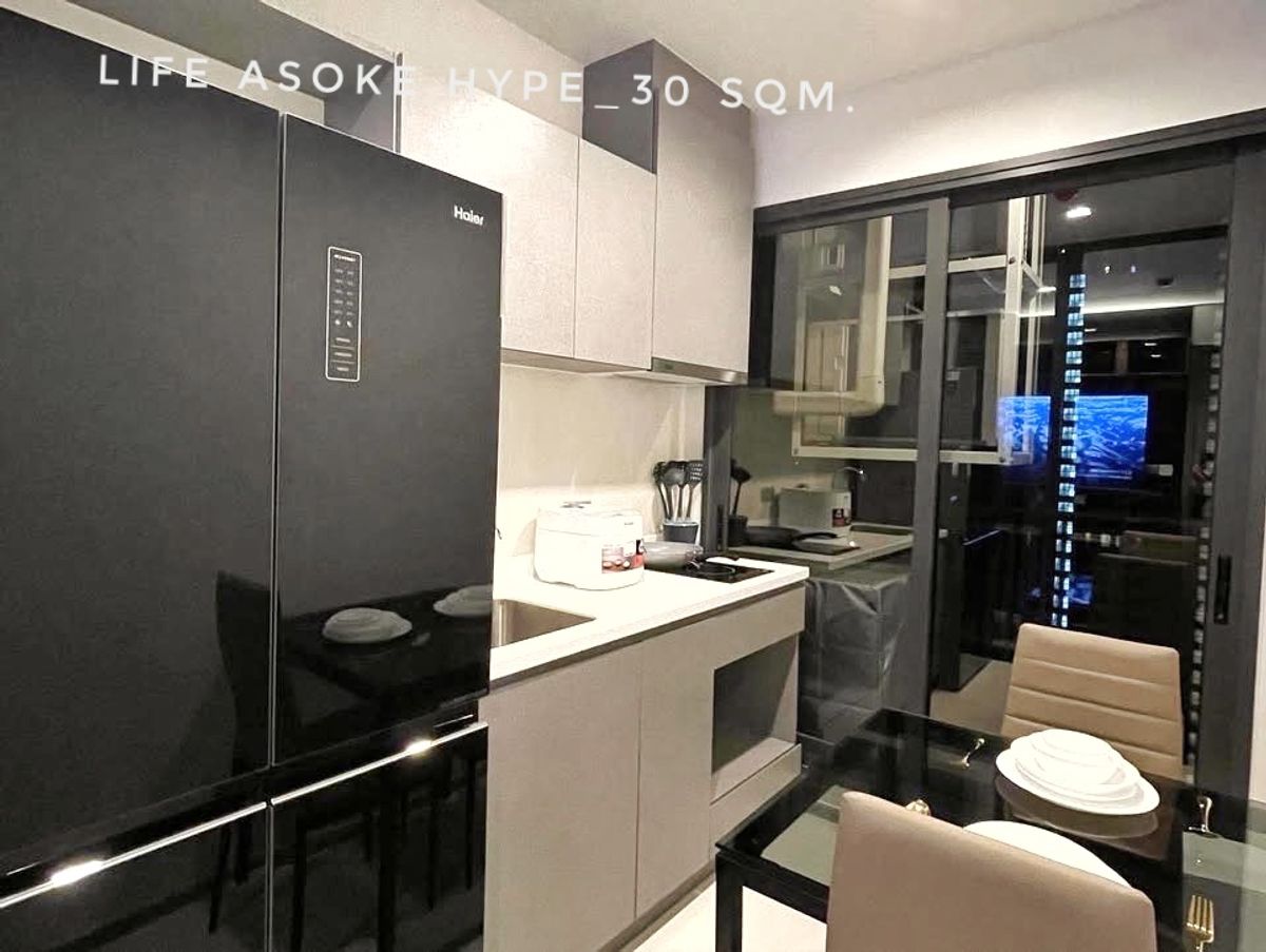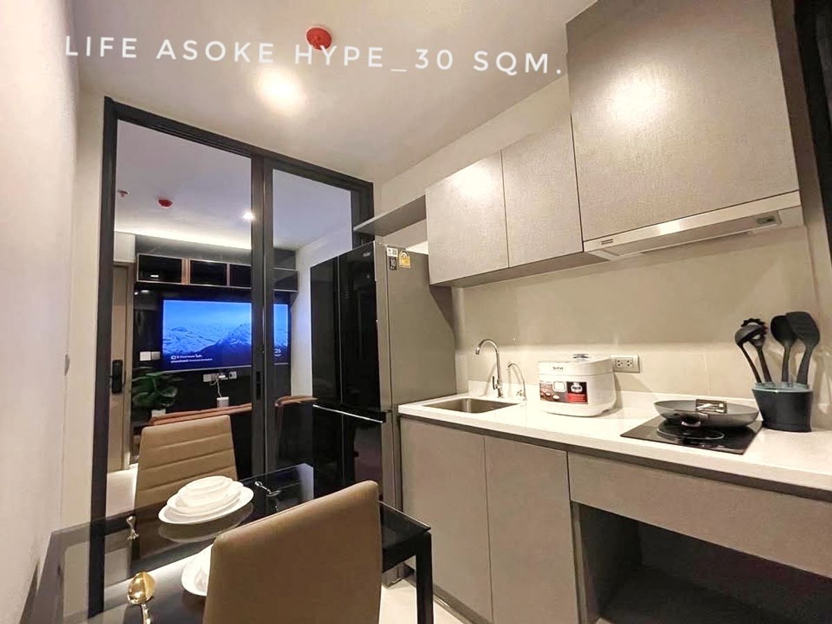 LIFE Asoke Hype Condo for Rent. Free Wifi has a separate kitchen near Central Rama 9 MRT and convenient expressway 30 sqm. / Floor 26 /1 Bedroom / 1, Living room / 1 Kitchen - Furniture built-in - Wif