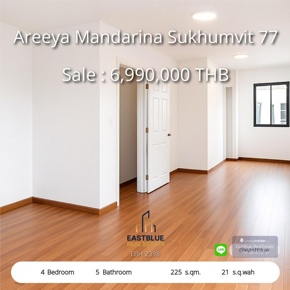 Project: Areeya Mandarina Sukhumvit 77 ID: EBH-2398 4 Bed 5 Baht House Area: 225 sq m Land Area: 21 sq m Rental Price: 30,000 THB per month Selling Price: 6,990,000 THB https://www.eastblueth.com/house/EBH-2398/r/1f66e5ce-f59f-8185-836d-fdd84653d9fd Contact, Appointment for viewing. Line: @eastblue / https://lin.ee/yNwHbFs Call: Contact number WhatsApp: Contact number View over 50,000 properties, explore over 50,000 listings on our website: https://www.eastblueth.com ❗️❗️Not accepting co-agents❗️❗️ . Areeya Mandarina Sukhumvit 77 4-bedroom, 5-bathroom detached house with 2 parking spaces Usable area: 225 sq m, land area: 21 sq wah Rental price: 30,000 baht/month Sale price: 6,990,000 baht Project Highlights • Quality Areeya project located on Sukhumvit 77 Road • 24-hour security • Public park and green spaces within the project • Swimming pool and fitness center for members Nearby Places • Theparak Hospital (5.5 km) • St. Joseph Bangna School (7 km) • Central Plaza Bangna (9 km) • Mega Bangna (10 km) Move-in ready house in a convenient location near all amenities, meeting everyone's living needs #SecondhandHouse #BangnaHouseRent #AreeyaMandarinaSukhumvit77 #SingleHouseSukhumvit77