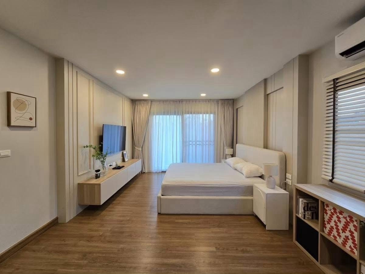 This new detached house project is only 1 kilometer from the Mega Bangna entrance on the Kanchanaphisek Expressway parallel road. House Details✨ Location: Soi 9, next to the U-turn area, providing ample garden space. No other houses opposite. Land Area: 55.5 sq.wah Usable Area: 190 sq.m House Facing: South Parking: 2 cars Bedrooms: 4 Bathrooms: 4 Open Living space: Living room combined with dining room Kitchen: 1 Digital door lock EV Charger installed List of Appliances: TVs: 2 (1 65" & 1 55") Air Conditioners: 6 (in every room) Water Heaters: 4 Microwave: 1 Oven: 1 Electric Stove: 1 Refrigerator: 1 Washing Machine & Dryer: 1 Rental Price: 92,000 THB/month Minimum 1-year contract Price includes gardening, common area fees, and air conditioner cleaning (twice a year). 📌If interested, please contact for more information at Tel/Line/Whats: Contact number (Poy 会中文) 语言溝通: 泰文,英文,中文