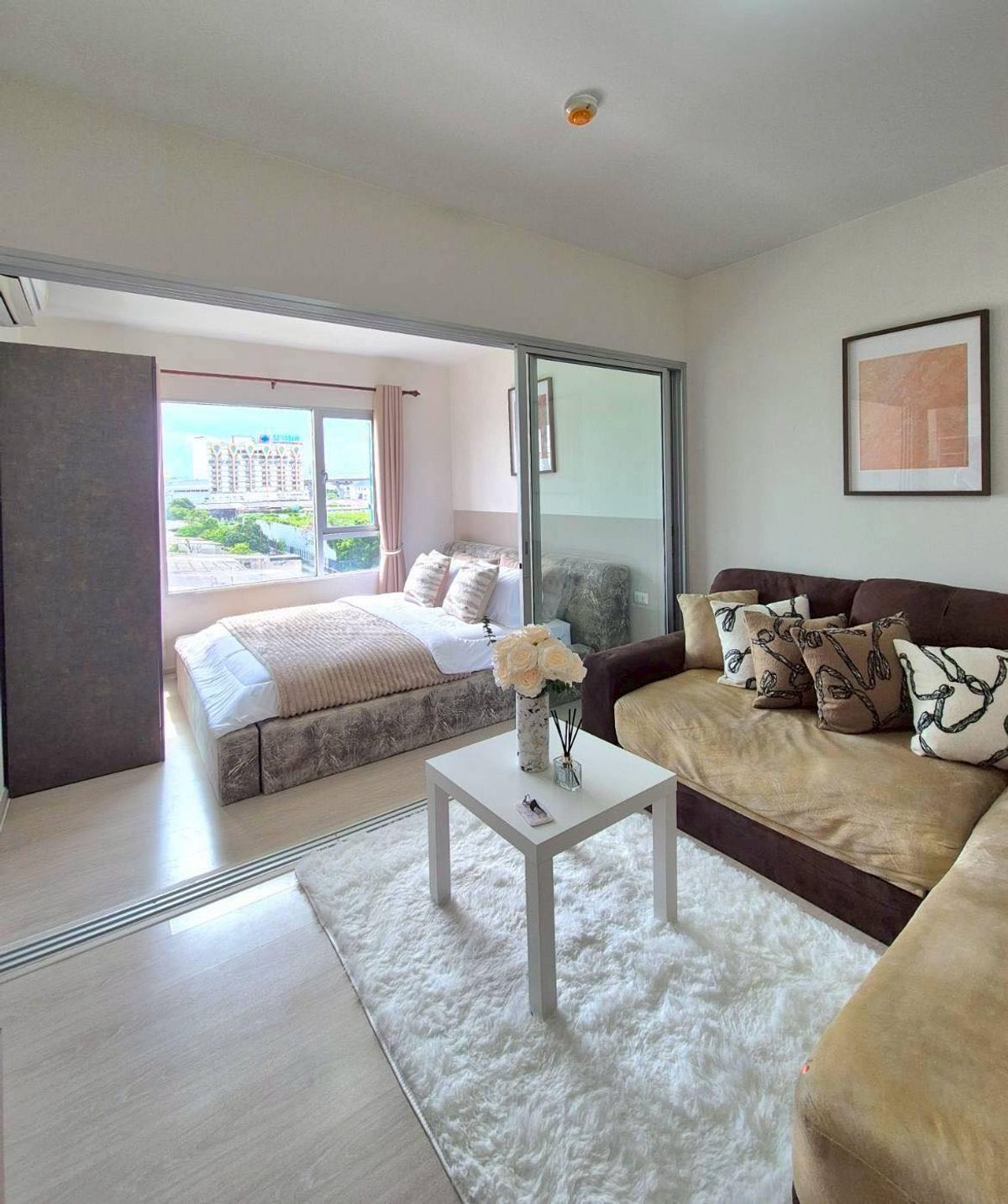 PLUM CONDO EXTRA Rama 2 Low Rise Condo 📍 Floor 5 Building A size 29 sq.m. 💰 8,500 /month Deposit 2 months + 1 month in advance Complete: TV, refrigerator, microwave, bed, sofa, built -in kitchen on th