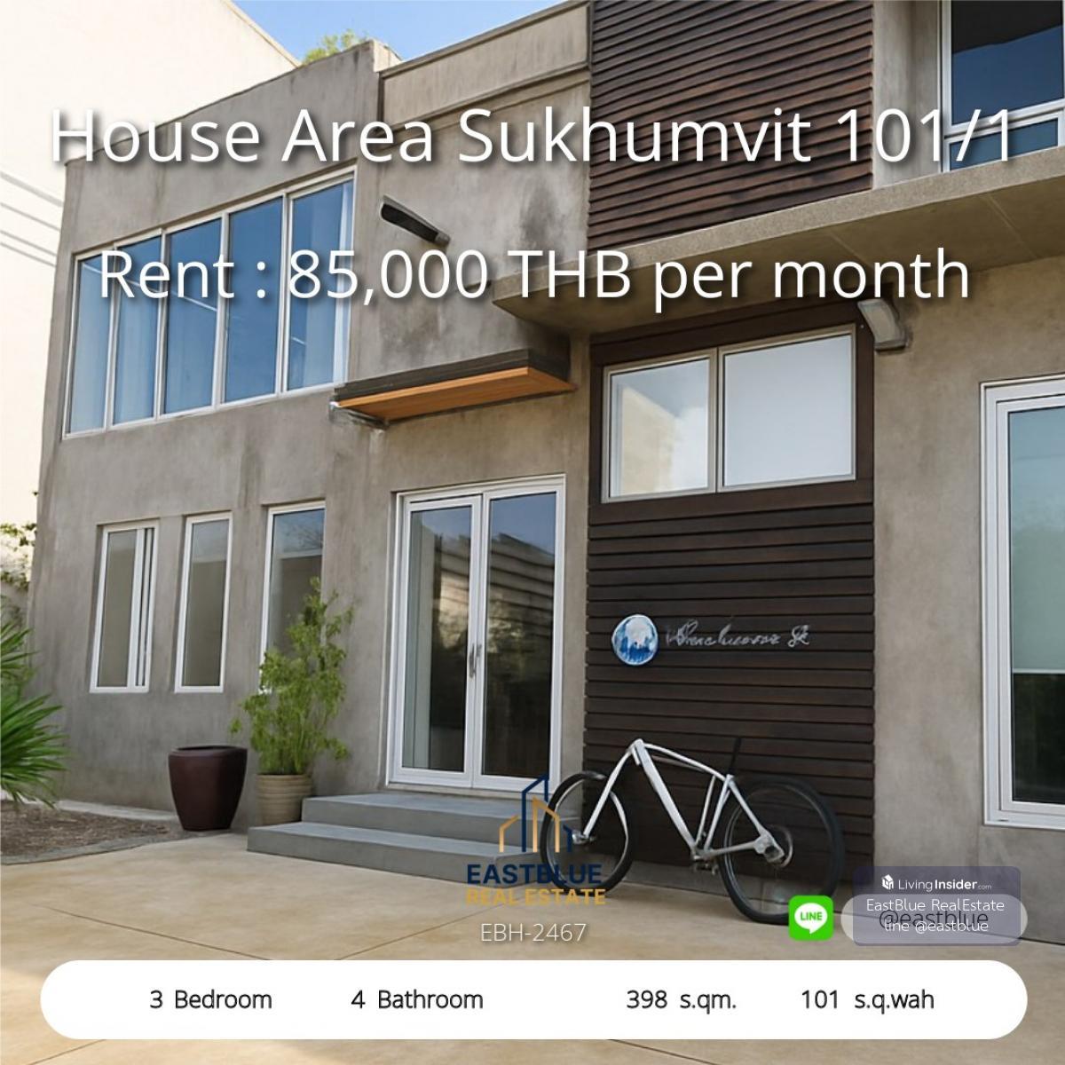 Studio Home for Rent - Sukhumvit 101/1 Near BTS PUNNAWITHI Ideal for Business use and Living | Former TV Production House Bedrooms) • 1 Studio Room (6x12 M) Divided Into 2 SoundProof Spaces • Meeting room, Living Area • Kitchen Set, Dining Area, Back KitchenSion • Garden Area, Rooftop Terrace • Land Size 101 SQ.WAH | USable Area 398 SQ.M. (EXCluding Rooftop) Access from Srinakarin Road, Suan Luang Station (Yellow Line), SEACON Square, Train Market, Paradise Park • Nearby: Udomsuk Road, Central Bangna, Bangna, Onnut ROAD For Ret 70,000 THB/Month Long-Term RENTAL 1-3 YEARS (AS-IIS CONDITION) Pets or Company Registration-Subject to Case-BY-BY-CASE AppROVAL Contact Ploy Contact number To rent a strongest house. BTS Punnawithi Suitable for business and residence | Used to shoot television programs • 3 bedrooms, 4 bathrooms, 3 parking spaces • 3 offices (can be adjusted to bedroom) • 1 studio, 6x12 m. The rear addition • Garden next to the house washing court • Land 101 sq.who | Usable 398 sq.m. (not including roof) • Good location in many ways: Sukhumvit BTS Punnawithi Road, True Digital Park Paradise Park • Near Udom Suk Road Central Bangna, Big C Bangna, shortcut to Onnut Rental fee of only 70,000 baht/month Long -term contract 1-3 years (rent according to the condition) Raising animals Or company registration-Considering case Contact Ploy East Blue Contact number Project: house area sukhumvit 101/1 ID: EBH-2467PG 3 Bed 4 Baht House AREA: 398 SQM Land Area: 101 SQ.WAH Retal Price: 70,000 THB per Month Contact, Appointment for viewing. Line: @eastblue/https://lin.e/ynwhbfs WhatsApp: +66-64-2883 Website: https: //www.eastblueeth.com- ❗️❗️Co-Agent Contact LINE@ only❗️❗️