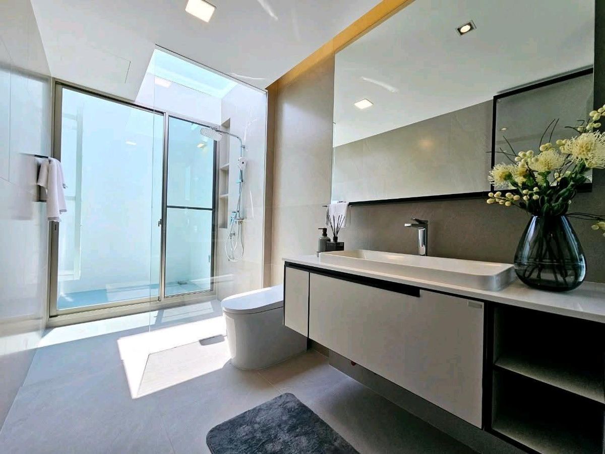 Luxury house for rent Vive Rama 9 For rent 245,000 / month In advance 2 months 3 -storey detached house, 324 sq.m. • 3 bedrooms, spacious + 1 bedroom, Duplex style • 4 bathrooms Multipurpose zone, sem