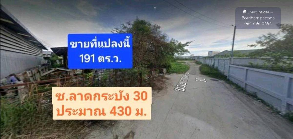 Land for sale 191 sq.w. Soi Lat Krabang 30, Bangkok (from Lat Krabang Road, about 430 meters). Concrete road to the front of the land plot Suitable for building houses, offices, apartments, warehouses
