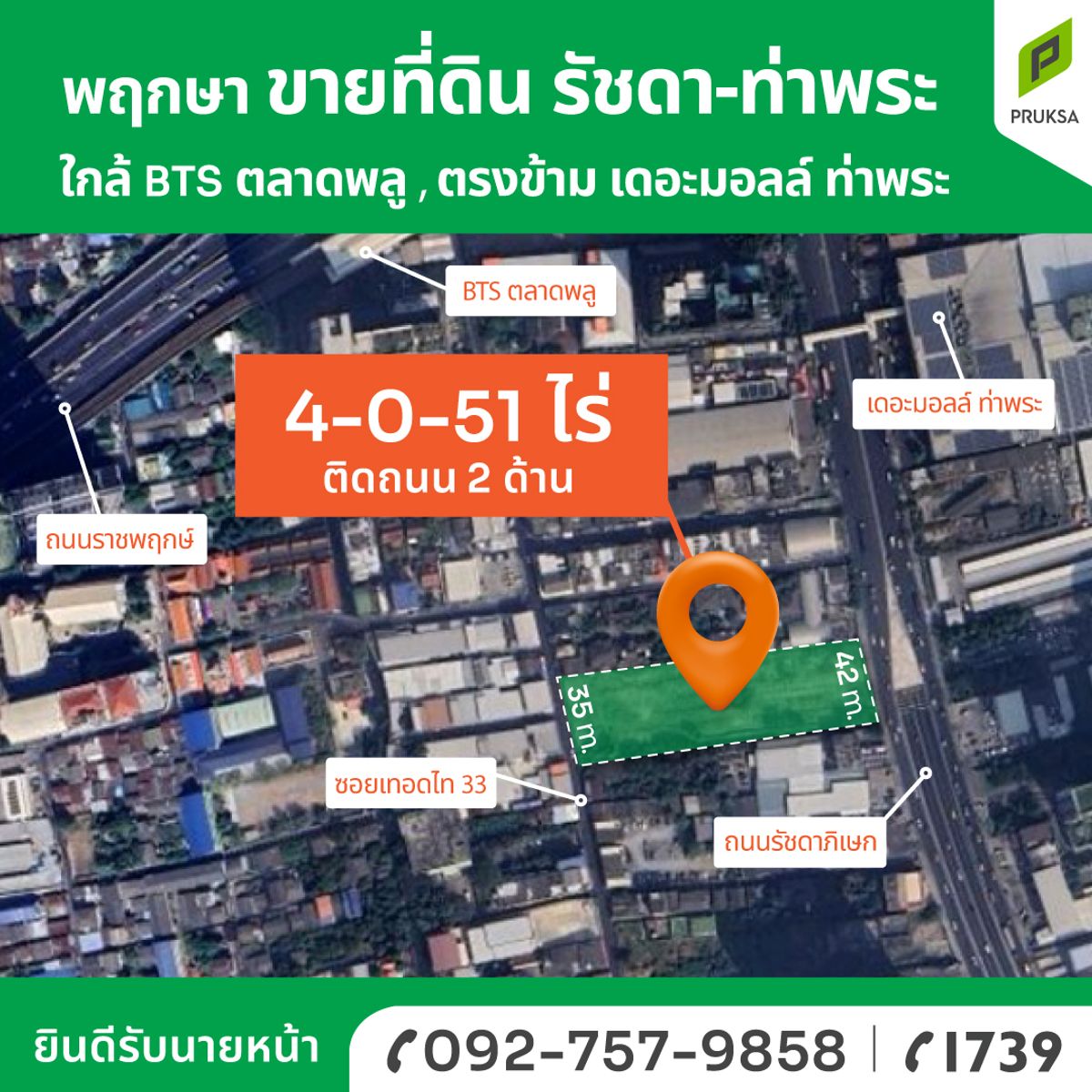 📍 Beautiful plot of land A22 Tha Phra-Golden Location near BTS Talat Phlu 🔥 💥 4-0-51 rai (1,651 sq.wah) 📌 Width on both sides-on the front of Ratchadaphisek / Behind the Soi Through Tai 33 Opposite Th