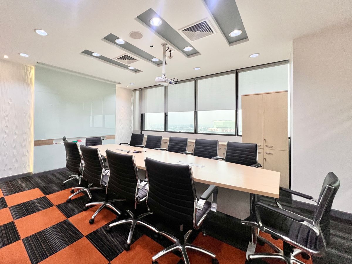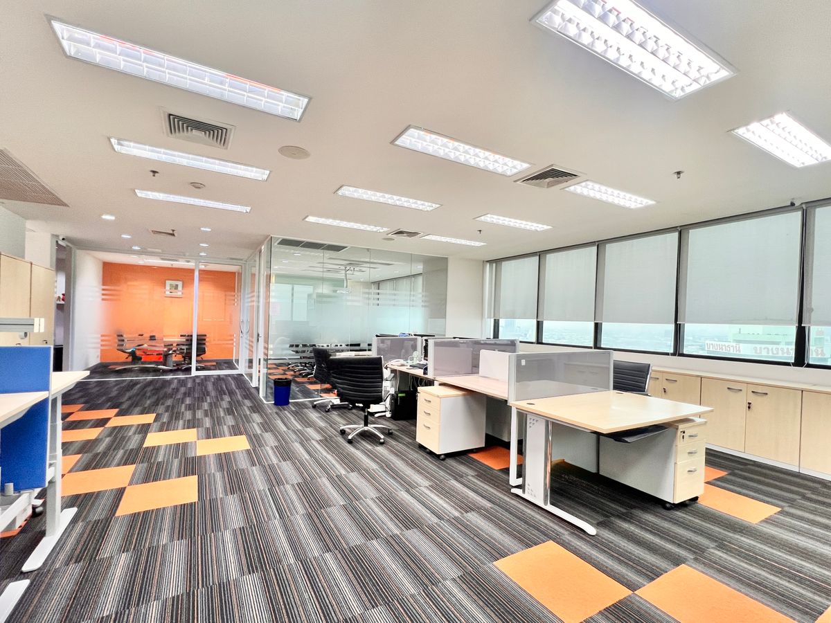 Details Office / Office for Rental Floor 19 Usable area 186 sqm 2 meeting rooms 2 Executive room As for the staff desk Document storage section The entrance counter The kitchen For rent with equipment. Ready to work Location: Central Bangna Office zone Facilities Worlds 24 -hour security ……………………………………………… Rent 90,000 baht / month (2 month insurance payment in advance 1 month) Selling price 18 million ………………………………… Contact number Line: Lucky_nat