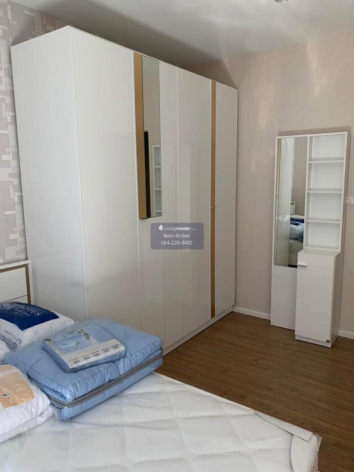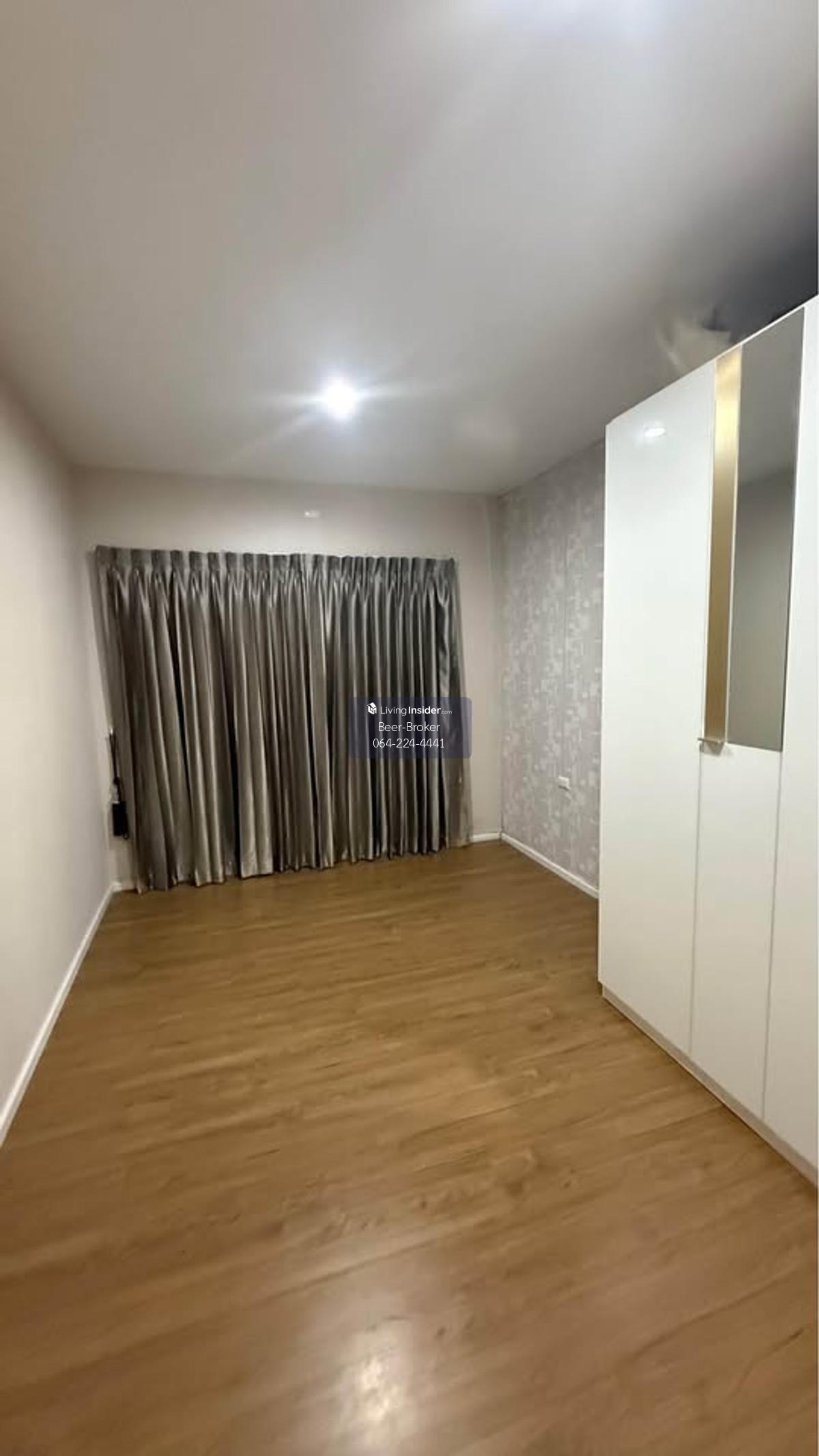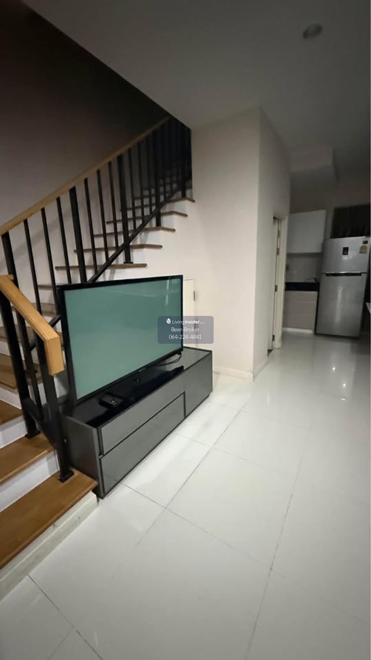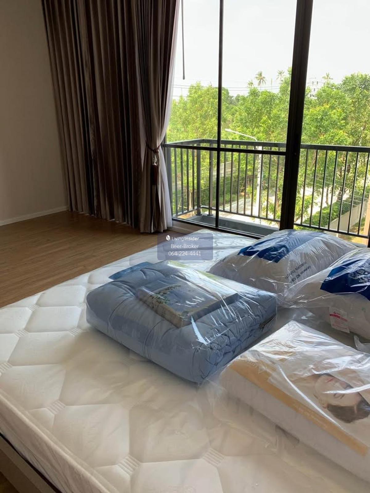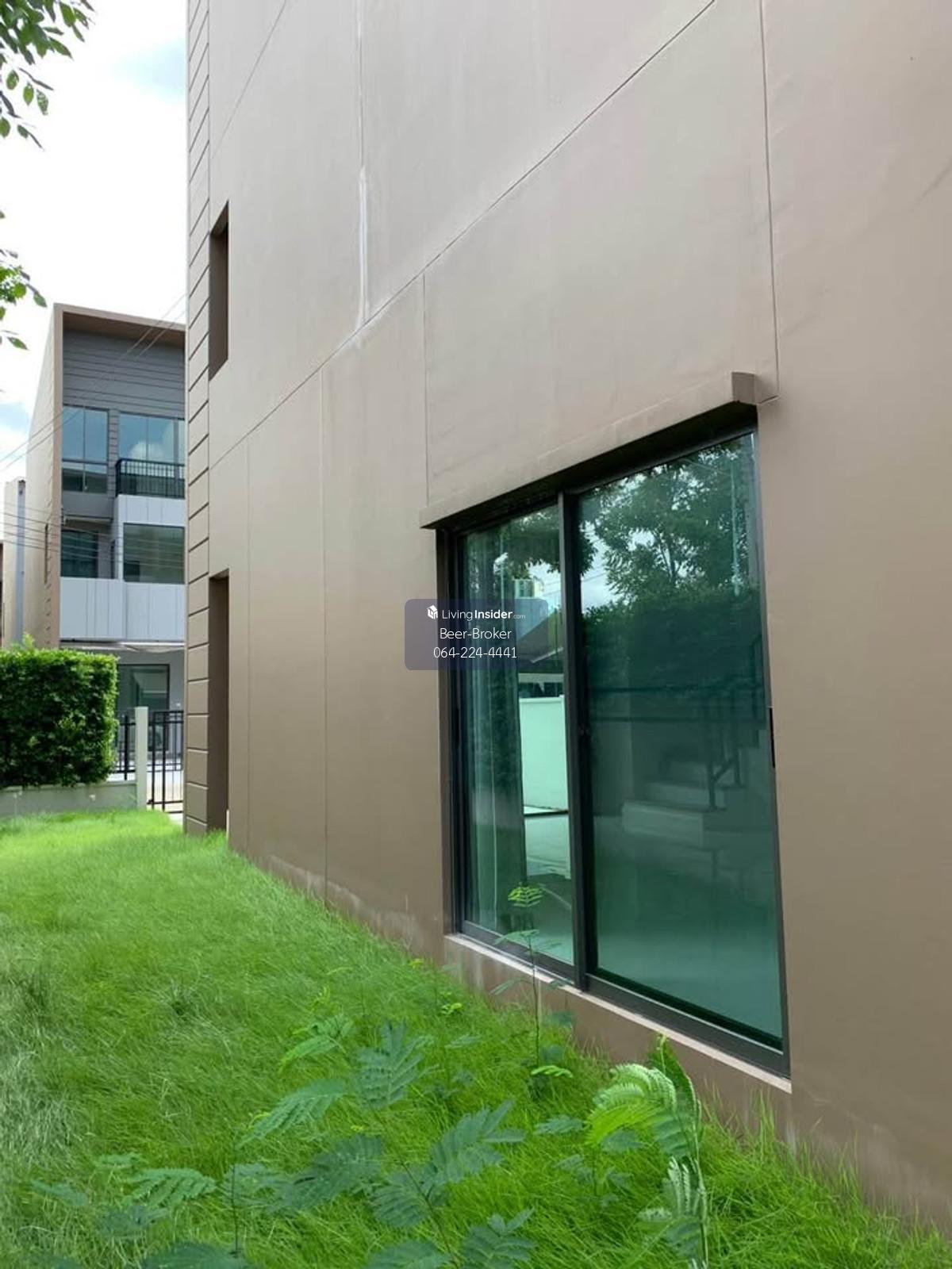 Modern design townhome, pet-friendly, corner unit, 3 stories, 5-minute drive to Central Westville. Baan Klang Muang Ratchaphruek - Corner unit, 3 stories - Size: 29.90 sq.m. - Only 6 units in the soi (lane) - 6-meter wide frontage - 3 bedrooms, 3 bathrooms - Master bedroom with inverter air conditioner, en-suite bathroom, and private balcony overlooking nature. - Bedrooms 2 and 3 with air conditioners. - Built-in kitchen with granite countertops, electric stove, and range hood, plus a pantry for food preparation. - Refrigerator and water filter included. - Wallpaper, mosquito nets, and high-quality curtains already installed. - Close to the project's recreational park (only 300 meters away). - Beautiful house with a lush, tree-filled surroundings due to being a corner unit. 180-degree view of the surrounding garden. - Parking for 2 cars, 3 air conditioners. For more information, please contact us at Khun Beer : Call Contact number Line ID : @beerbroker (please include @) or Click 👉 https://lin.ee/pqQqdgP At your service.