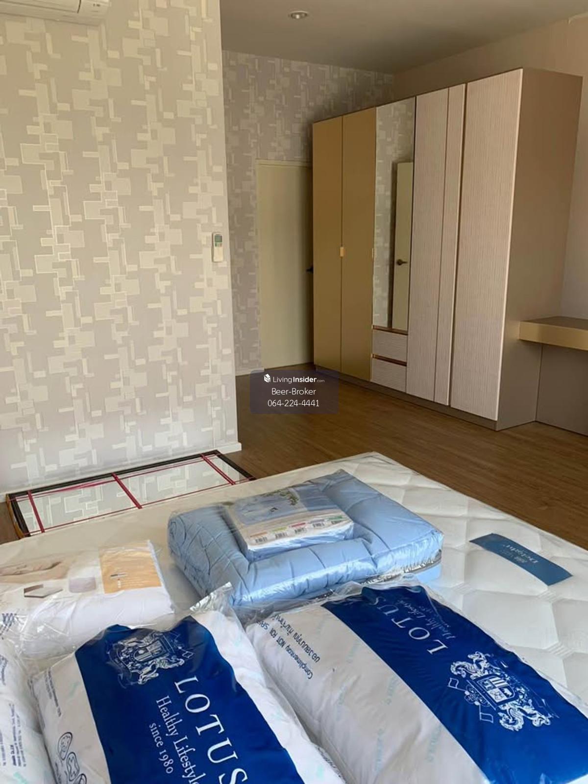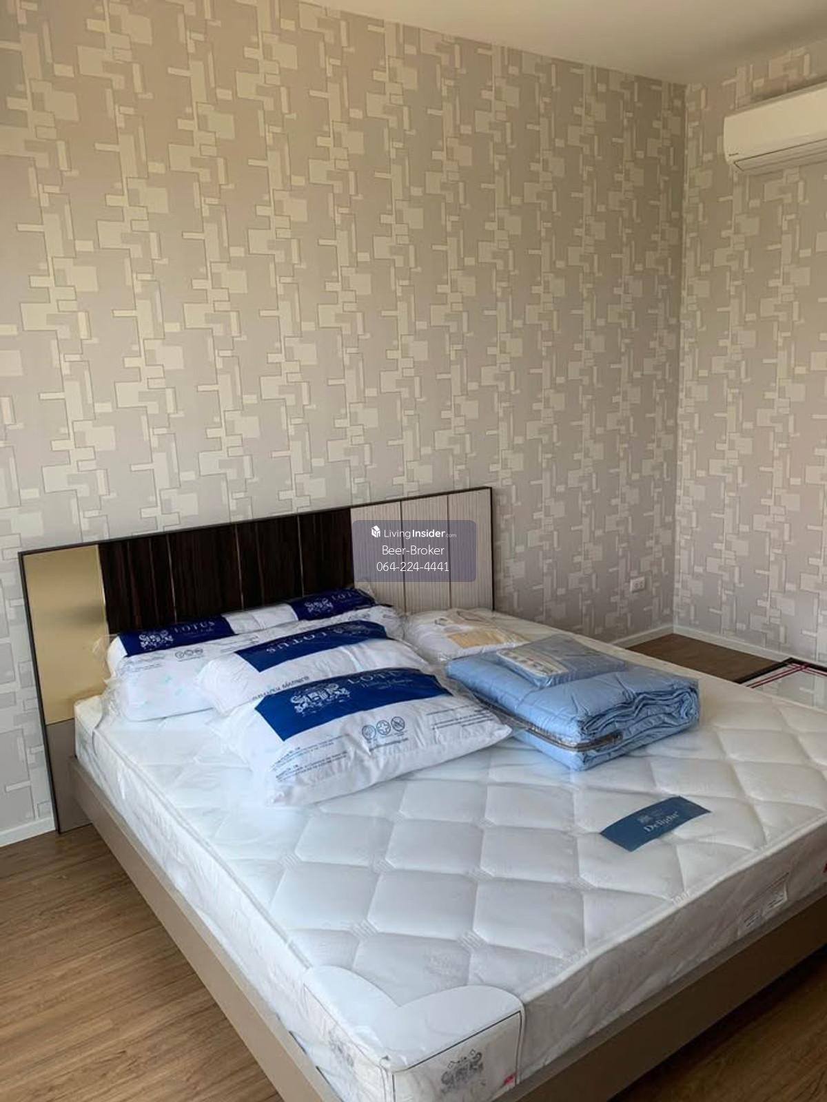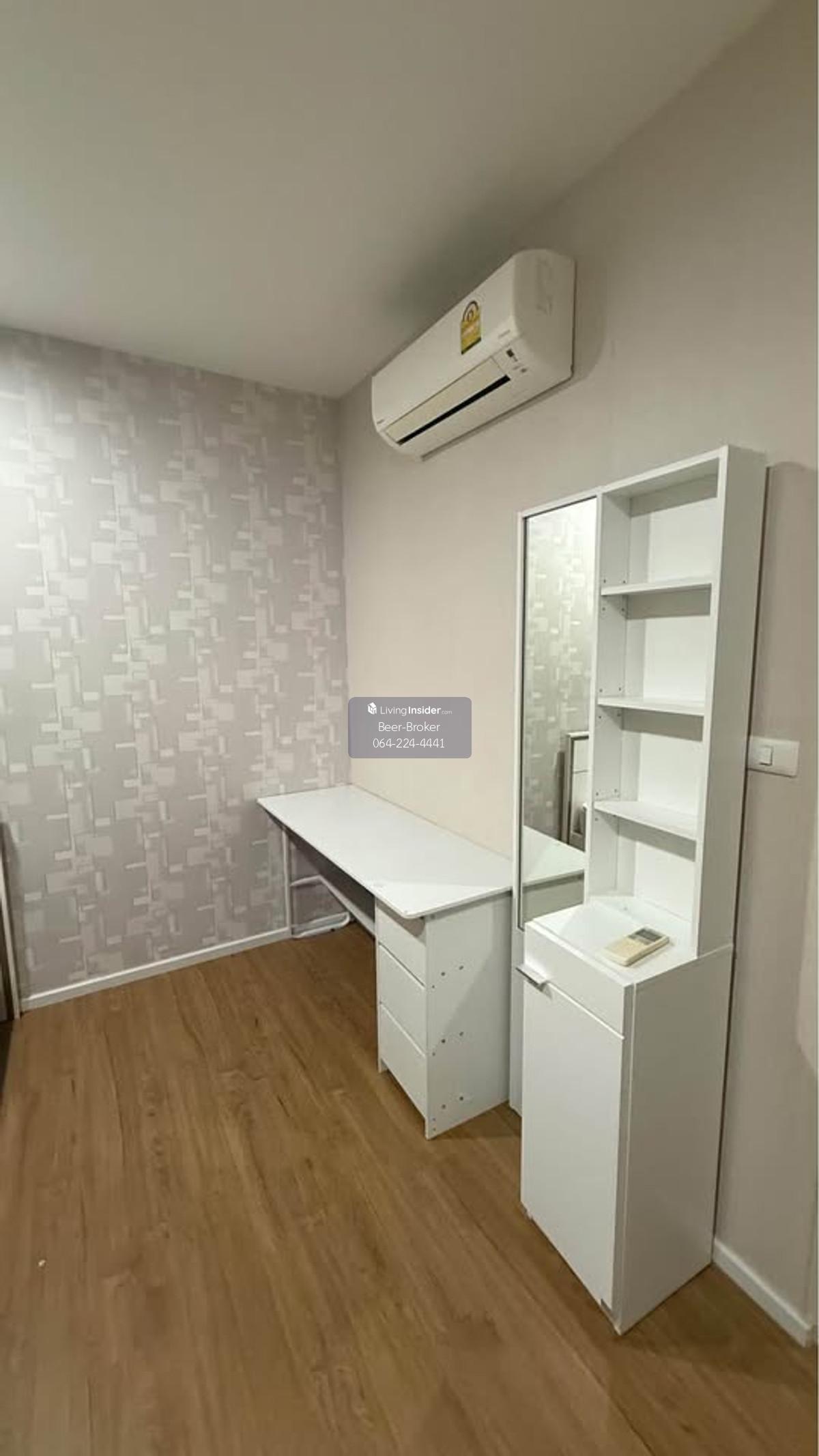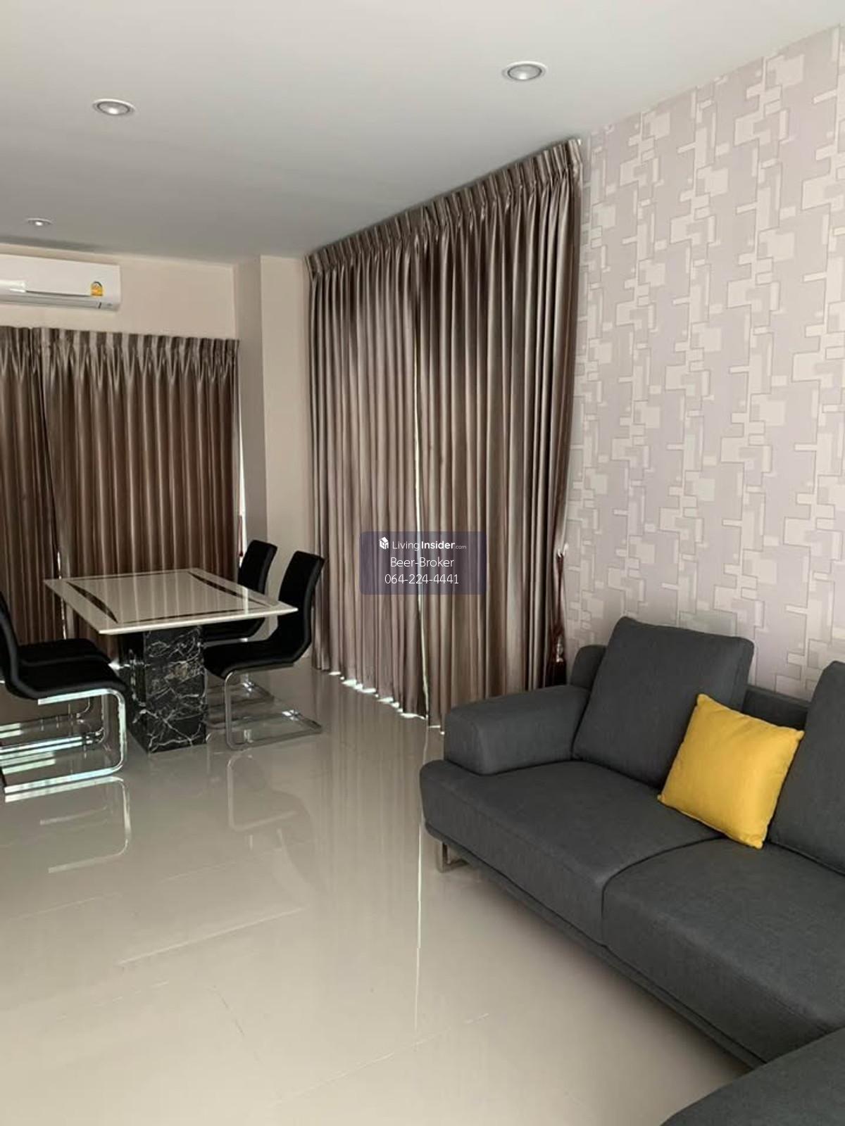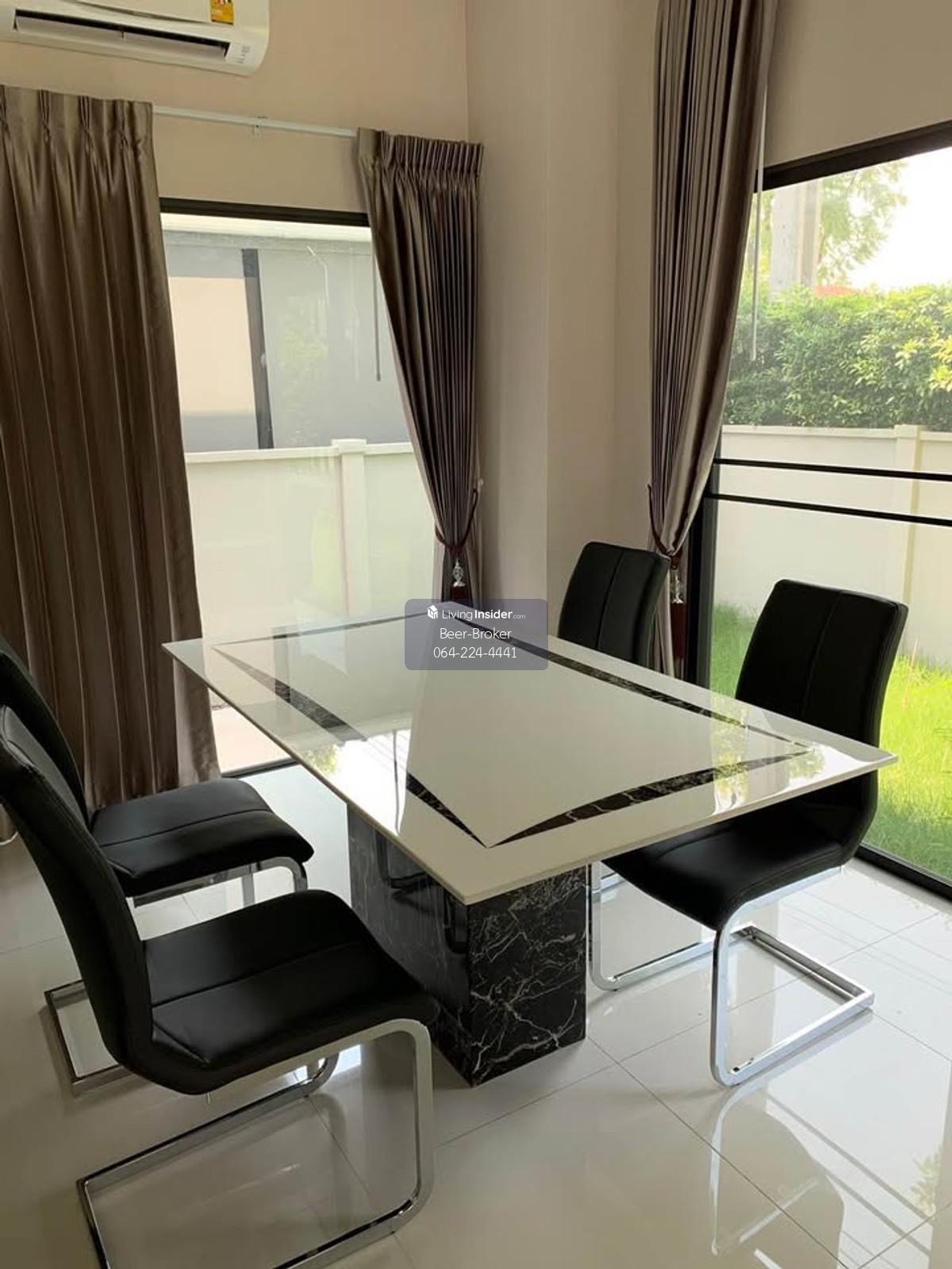 Modern design townhome, pet-friendly, corner unit, 3 stories, 5-minute drive to Central Westville. Baan Klang Muang Ratchaphruek - Corner unit, 3 stories - Size: 29.90 sq.m. - Only 6 units in the soi (lane) - 6-meter wide frontage - 3 bedrooms, 3 bathrooms - Master bedroom with inverter air conditioner, en-suite bathroom, and private balcony overlooking nature. - Bedrooms 2 and 3 with air conditioners. - Built-in kitchen with granite countertops, electric stove, and range hood, plus a pantry for food preparation. - Refrigerator and water filter included. - Wallpaper, mosquito nets, and high-quality curtains already installed. - Close to the project's recreational park (only 300 meters away). - Beautiful house with a lush, tree-filled surroundings due to being a corner unit. 180-degree view of the surrounding garden. - Parking for 2 cars, 3 air conditioners. For more information, please contact us at Khun Beer : Call Contact number Line ID : @beerbroker (please include @) or Click 👉 https://lin.ee/pqQqdgP At your service.