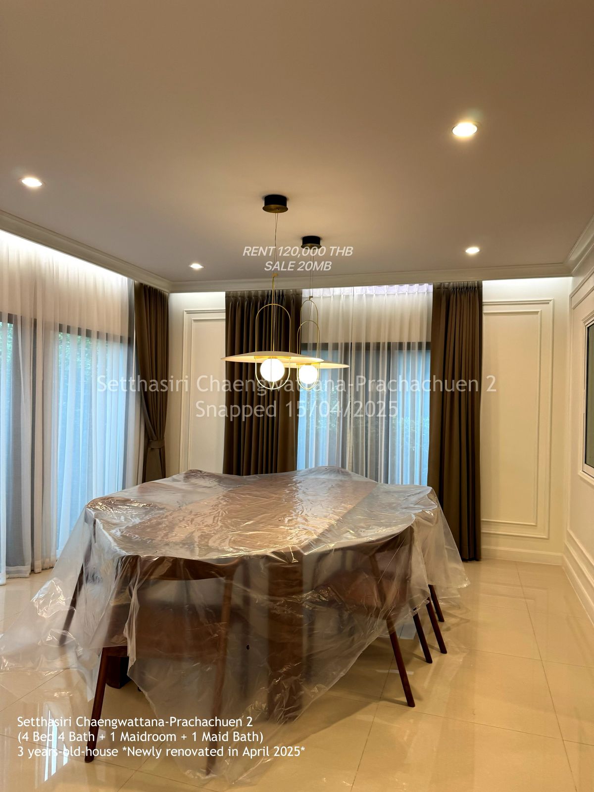 ✨Luxury House for Rent – Setthasiri Chaengwattana–Prachachuen 2 Near Harrow International School and St. Francis Xavier School Modern-style detached home, newly renovated, spacious and move-in ready 📍 Prime Location — Located on Liap Khlong Prapa Road, close to expressways and easily accessible to Chaengwattana, Prachachuen, Muang Thong Thani, and Vibhavadi 🏡 Property Details 2-storey detached house on a 74.49 sq.wah land plot (~298 sqm) 265 sq.m. usable area 4 bedrooms, 4 bathrooms + 1 maid’s room with ensuite Covered parking for 3 cars 6 air-conditioning units throughout the house Master bedroom comes with Omazz Grand Falcon mattress (5-star hotel standard) House is 2–3 years old, newly renovated in April 2025 Underground electrical system throughout the project (clean and safe) Fully furnished with electrical appliances – ready to move in! 💸 Rental Terms 120,000 THB/month 2 months deposit (240,000 THB) 1-month advance rent Minimum 1-year lease 📞 For viewing or more information: Add me on Line: ipangiie or click https://line.me/ti/p/D__lXbXulq ---------------------------- 豪华独栋别墅出租 – Setthasiri 清瓦塔那–Prachachuen 2 项目 靠近 Harrow 国际学校 与 St. Francis Xavier 学校 现代风格新房,空间宽敞,刚翻新完毕,拎包入住 📍 优越地段:临近水渠路,靠近高速公路,便捷通达 清瓦塔那、Prachachuen、Muang Thong Thani 和 Vibhavadi 🏡 房屋详情 双层独栋别墅,土地面积 74.49 平方哇(约 298 平方米) 室内使用面积 265 平方米 4 间卧室,4 间浴室 + 1 间带独立卫生间的保姆房 可停放 3 辆车 配备 6 台空调,覆盖全屋 主卧配有 Omazz Grand Falcon 高端床垫(五星级酒店标准) 房龄仅 2–3 年,2025年4月刚翻新完毕 全社区电线入地(整洁安全) 家具家电齐全,拎包入住! 💸 租金信息 月租:120,000 泰铢 押金:2 个月(240,000 泰铢) 预付:1 个月租金 至少签约 1 年 📞 欢迎预约看房或了解更多信息 添加 Line:ipangiie 或点击 https://line.me/ti/p/D__lXbXulq