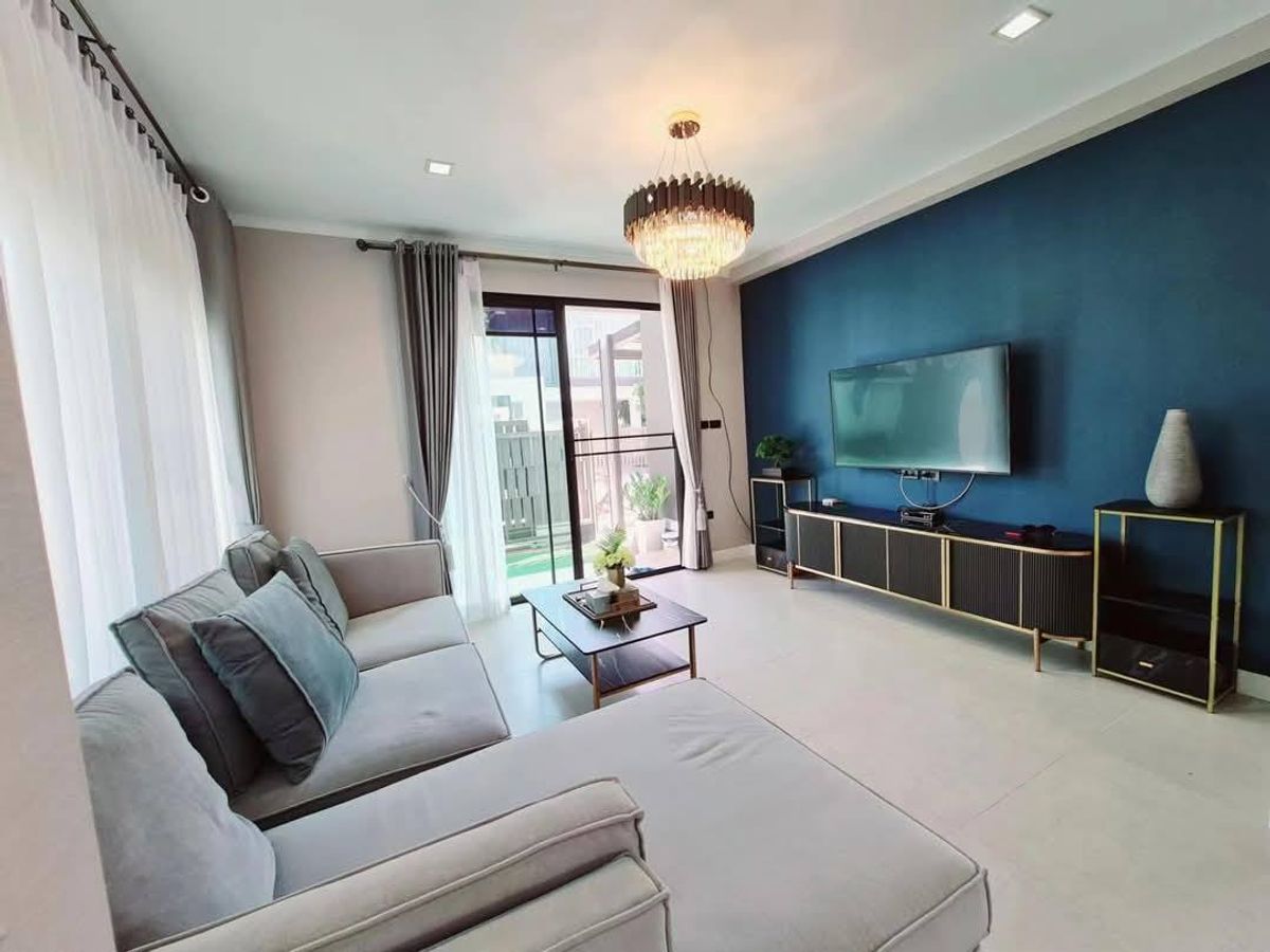 Land size: 55 square wah 4 bedrooms 3 bathrooms 1 kitchen 2 parking spaces Rent 60,000 baht per month (annual contract) Deposit 2 months / 1 month in advance Near the location And facilities Near the
