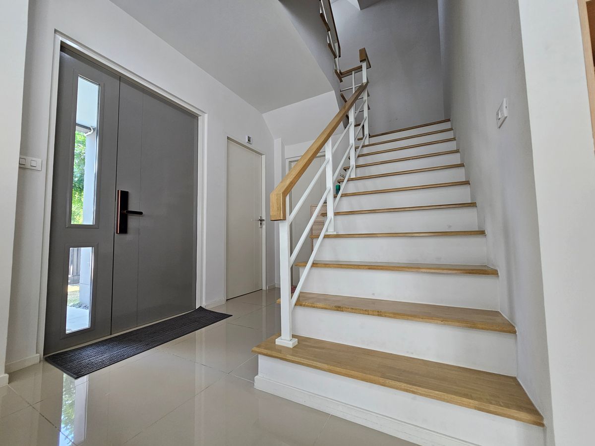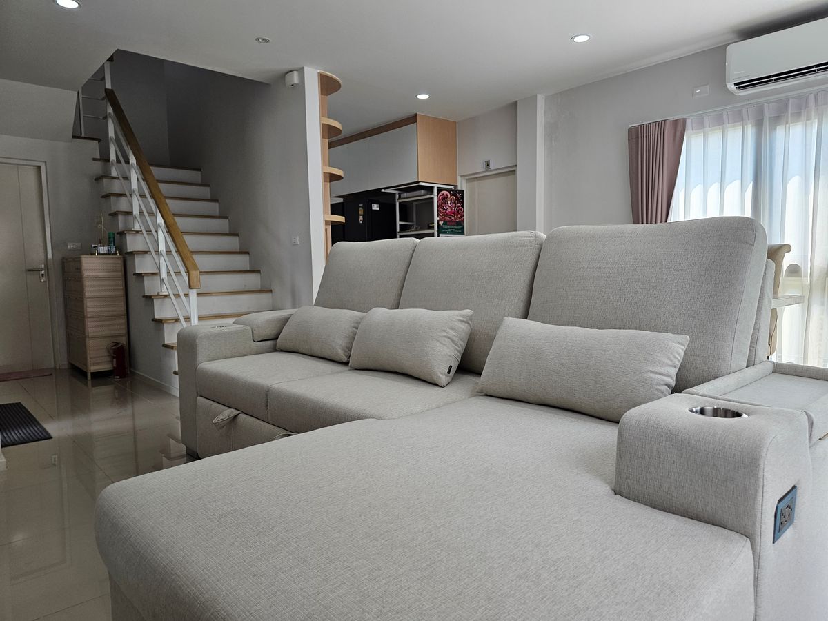 Twin house for sale, good location, Bangkok line, Srinakarin Romklao & Quot; Ban Klang Mueang The Edition Rama 9 - Krungthep Kreetha & Quot; AP network Location: Soi Kanchanaphisek 23, Thap Chang Subdistrict, Saphan Sung District, Bangkok 10250 💰 Price: 8,700,000 baht The contract deposit of 50,000 baht in the case of not more than 90% of the recovery of 100% deposit Type: Twin houses (only one floor adjacent) The space: 218 square meters 4 bedrooms & 1 bathrooms (1 multipurpose parking room ***) Of the project *** The back of the house is not attached to other houses *** The road in front of the house is wider than other alley in the project - The front of the house, north - 4 Misu Air conditioners - 2 water heater Por ******* The owner sells by himself *******
