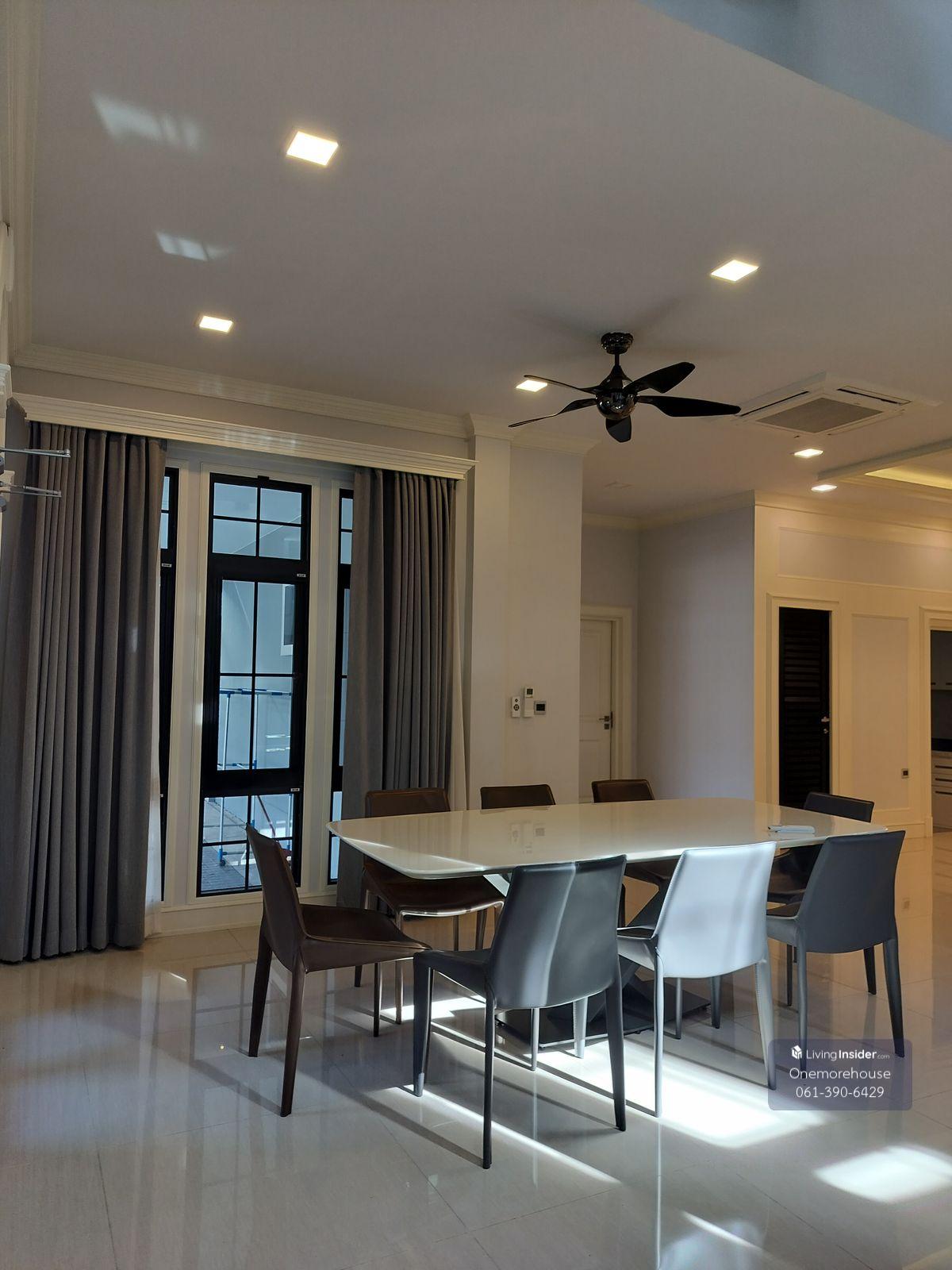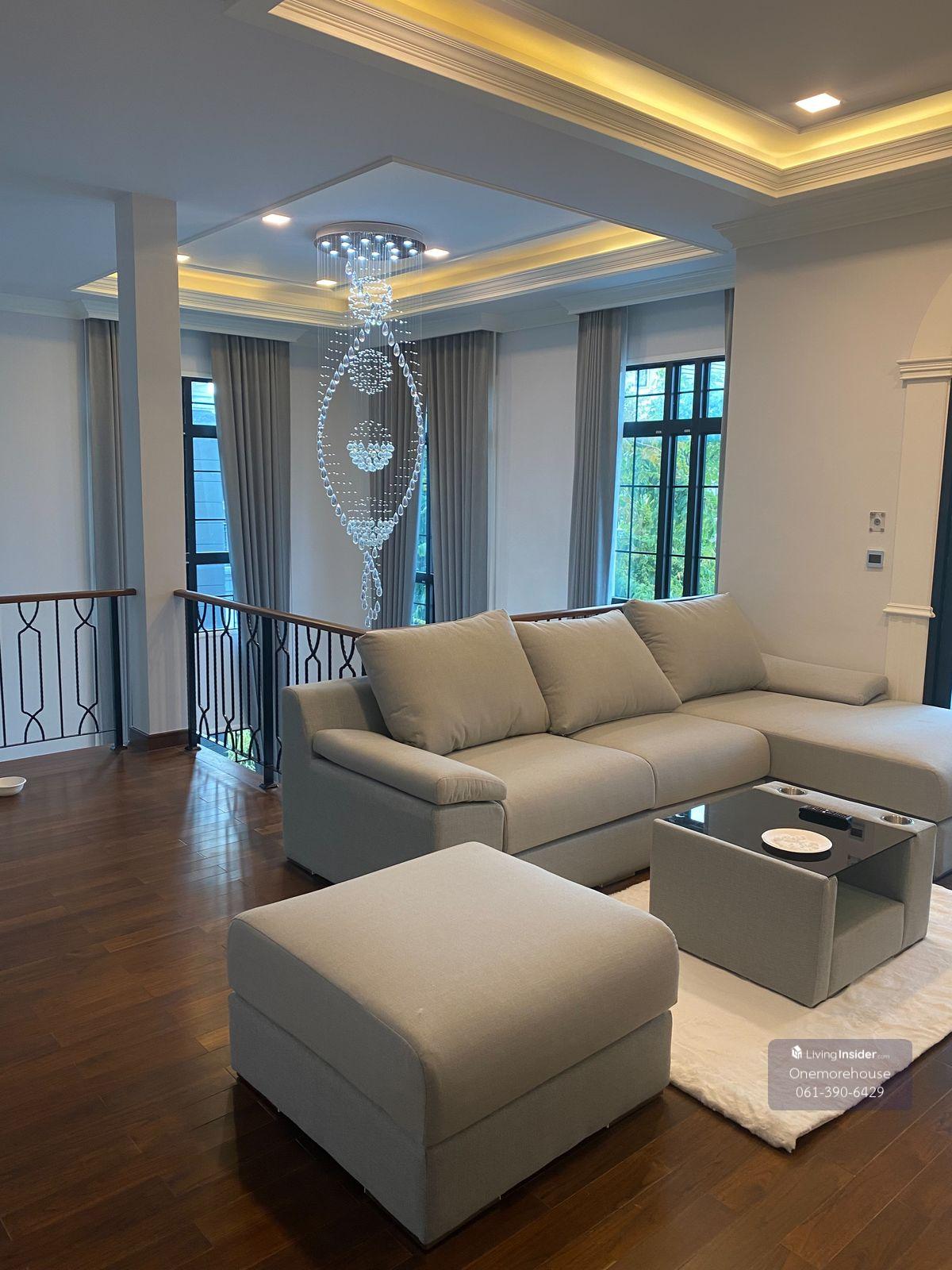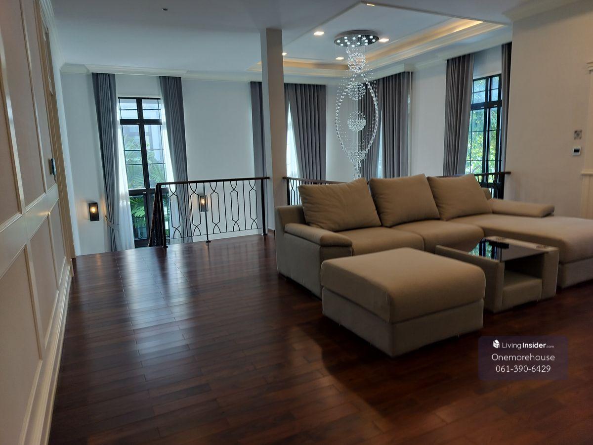 Luxury single house for rent Location: Paradise Shopping Center Layout: 4 bedrooms, 5 bathrooms, maid's room with bathroom, 1 dining room, 2 sitting rooms + Private elevator Useable size: 398 sq m Land size: 412 sq m Price: 220,000 baht/month 2-month deposit 1-month advance Contact Danny Line OA: @onemorehouse Single house for rent in Palazzo Srinakarin project 4 bedrooms, 5 bathrooms, 1 maid's room, 2 living rooms, 103 sq wah, 398 sq m, north-facing Next to Paradise Mall, Suan Luang Rama 9 Park, and Suan Luang BTS Station Parking for 3 cars Rental price: 250,000 baht per month