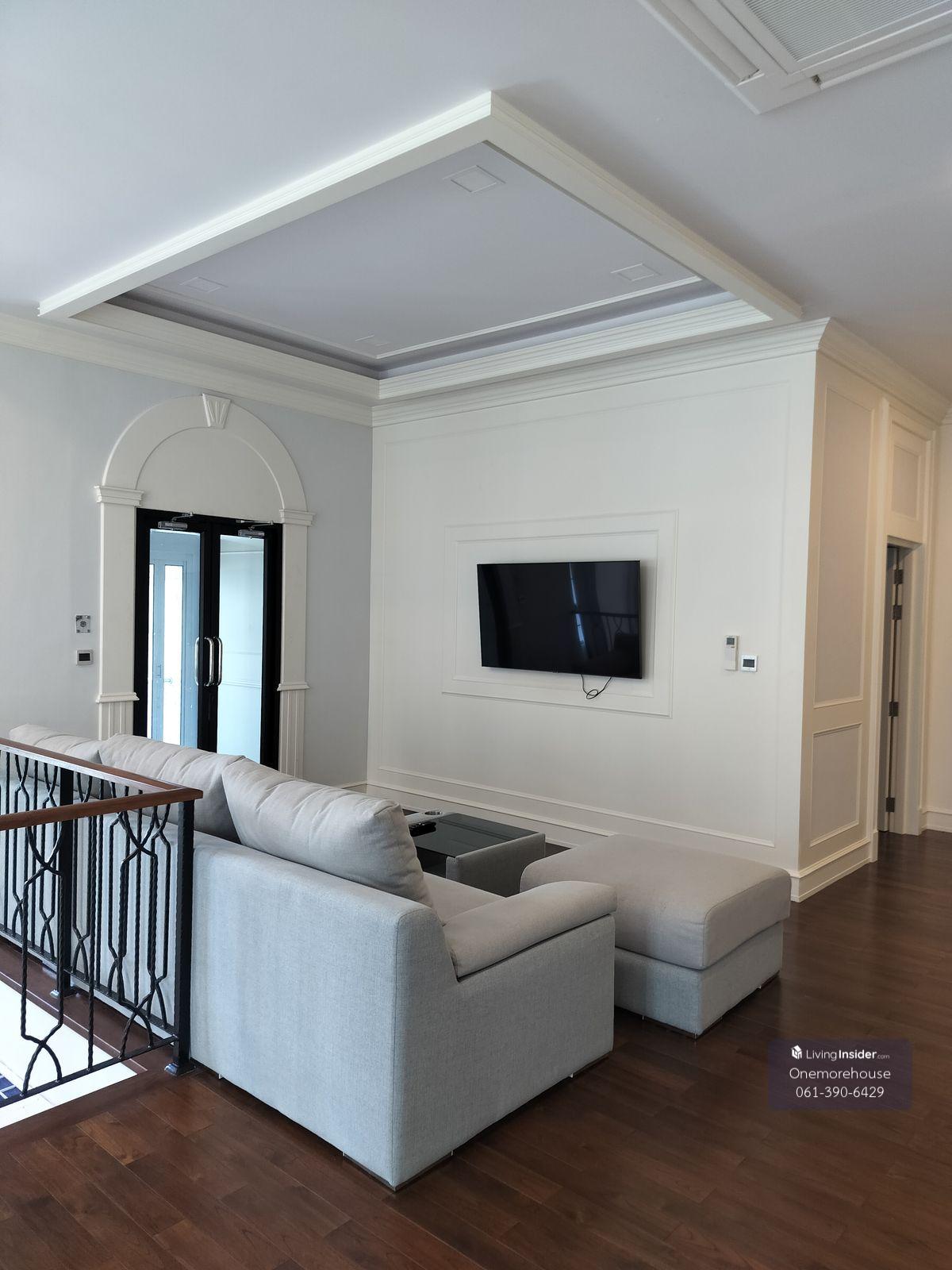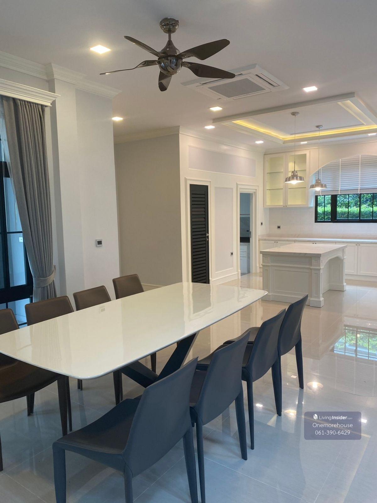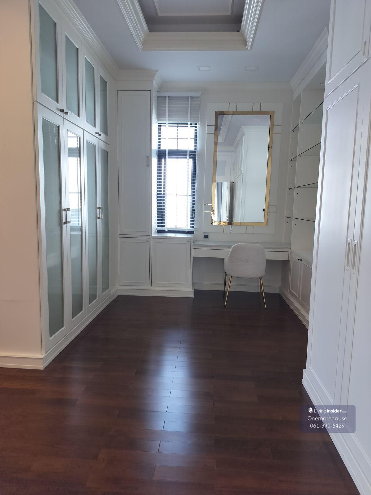 Luxury single house for rent Location: Paradise Shopping Center Layout: 4 bedrooms, 5 bathrooms, maid's room with bathroom, 1 dining room, 2 sitting rooms + Private elevator Useable size: 398 sq m Land size: 412 sq m Price: 220,000 baht/month 2-month deposit 1-month advance Contact Danny Line OA: @onemorehouse Single house for rent in Palazzo Srinakarin project 4 bedrooms, 5 bathrooms, 1 maid's room, 2 living rooms, 103 sq wah, 398 sq m, north-facing Next to Paradise Mall, Suan Luang Rama 9 Park, and Suan Luang BTS Station Parking for 3 cars Rental price: 250,000 baht per month