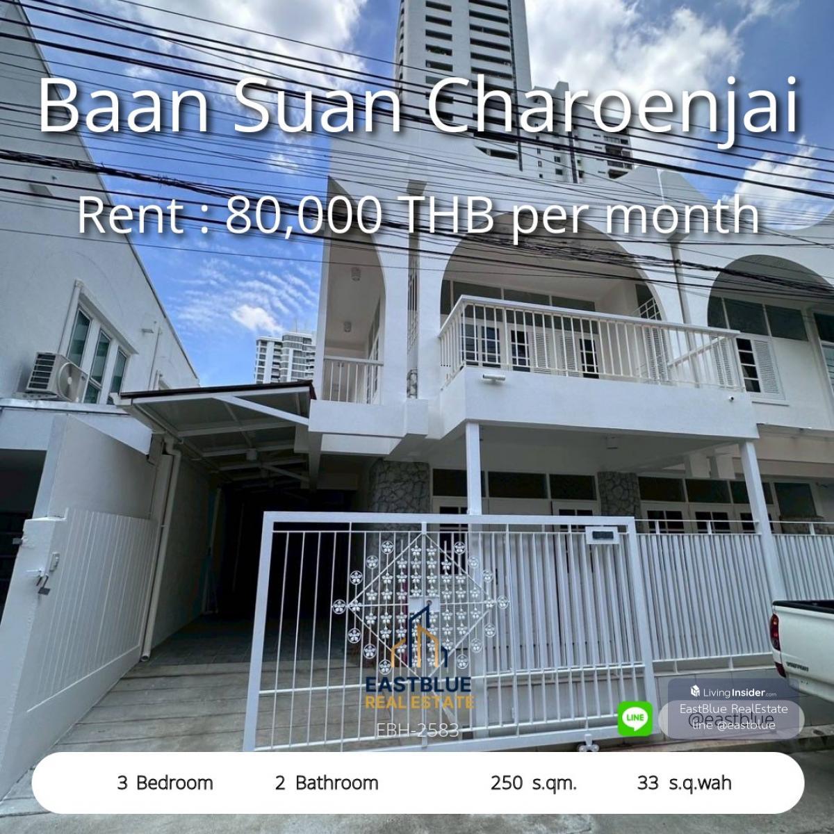 ** Baan Suan Charoenjai-Luxurious Living in Ekkamai ** THIS STUNNING 3-Bedroom, 2-Bathroom House is Available for Ret. Enjoy Spacious Living with a Usable Area of 250 SQM on A Land Size of 33 SQ.WAH. Retal Price: 100,000 THB per Month ** Location: ** • Situated on Soi Ekkamai 12 (Sukhumvit 63), KHLong Tan Nuea, Watthana, Bangkok 10110 ** Transportation: Major Roads Including Sukhumvit 63, Sukhumvit, Pridi Banomyong 71, THONGLOR, and Petchaburi. km) • BTS Thonglor (900 Meters) • BTS Phra Khanong ** Shopping and Lifestyle: ** • EMQUARTIER • EMSPHERE • Terminal 21 (? Thonglor • at Ekkamai Lifestyle Mall • Big C Ekkamai • Gateway Ekkamai • Lotus Rama 4 ** Educational Institutes: ** • Ekamai International School School • Thosri School • Singapore International School Bangkok ** Hospitals: ** ** Additional amenities: ** • 71 Sport Club • Port Authority of Thailand • Customes Deportment Baan Suan Charoenjai Offers A Prime Living Experience in the HEART OF THE CONGENIENT Transport Transport and a Wealth of amenities nearby. Discover your new home today. Project: Baan Suan Charoenjai ID: EBH-2583T1 3 Bed 2 Baht House Area: 250 SQM Land Area: 33 SQ.WAH (? Month Contact, Appointment for Viewing. Line: @eastblue/https://lin.ee/ynwhbfs WhatsApp: Contact number View More listings on our website: https: //www.eastblueeth.com- ❗️❗️Co-Agent Contact LINE@ only❗️❗️